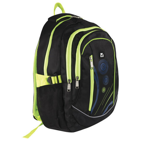 Рюкзак BRAUBERG HIGH SCHOOL универсальный, 3 отделения, Неон, черный/салатовый, 46х31х18 см, 225520