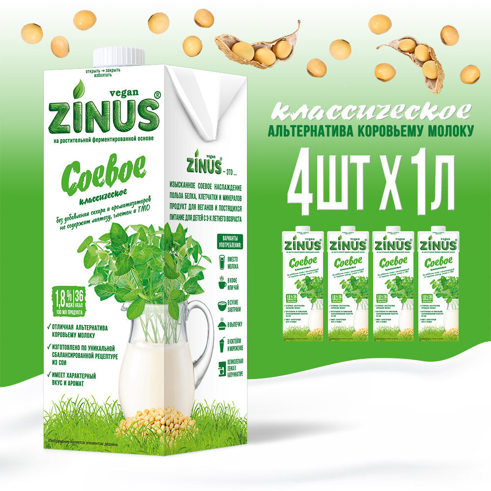 Купить Zinus Vegan "Соевое" 1,8% 1л. ТВА/коробка 4 шт/ Продукт на растительном сырье.