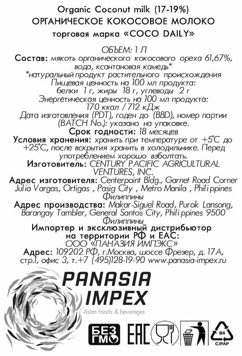 Кокосовое молоко органическое, COCO DAILY, Филиппины, 200 мл х 1шт интересное: