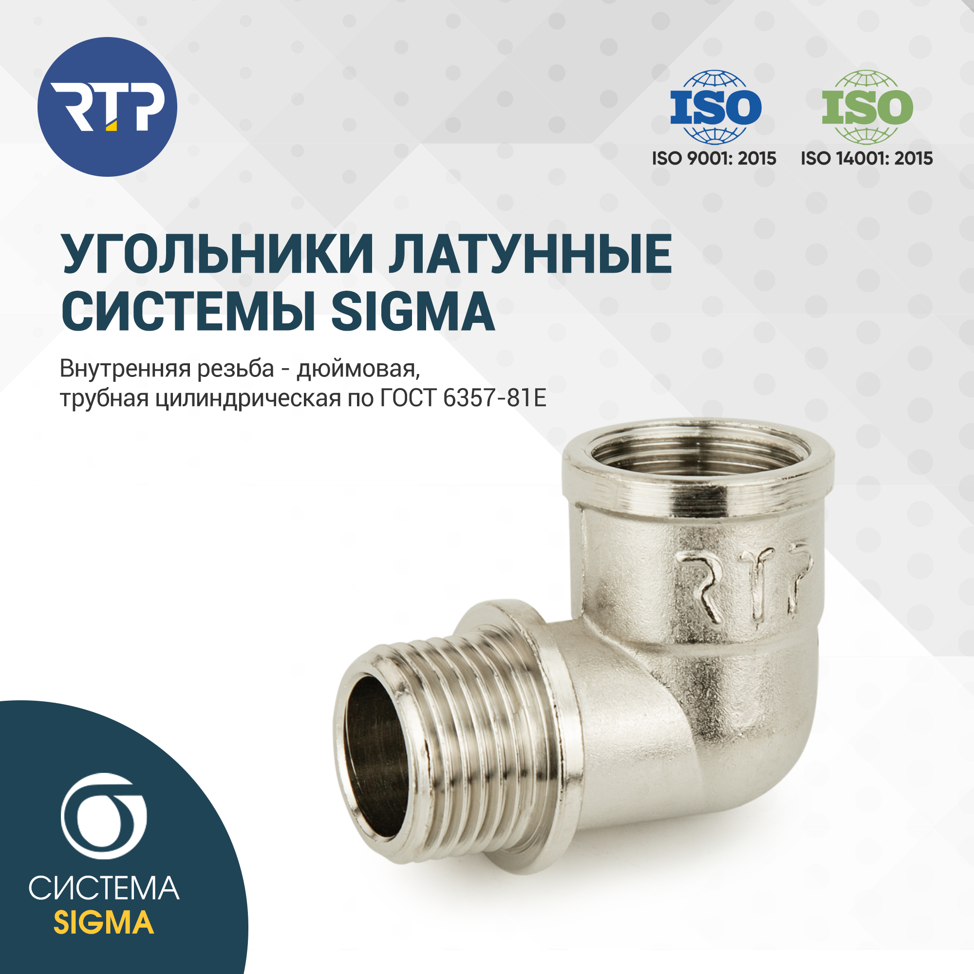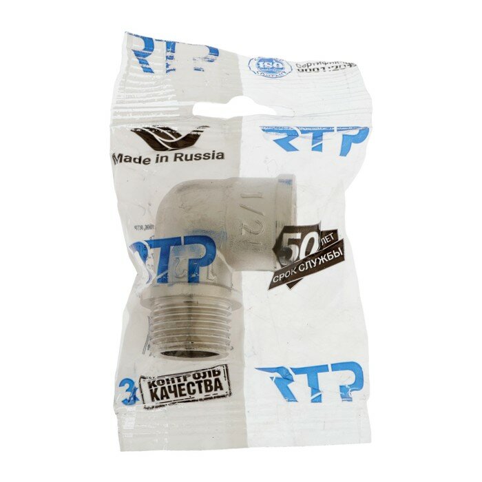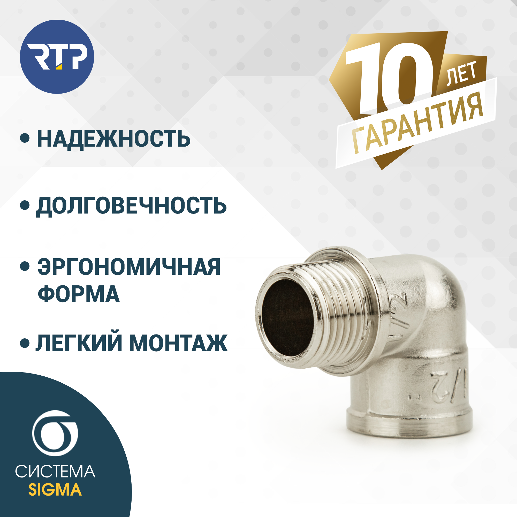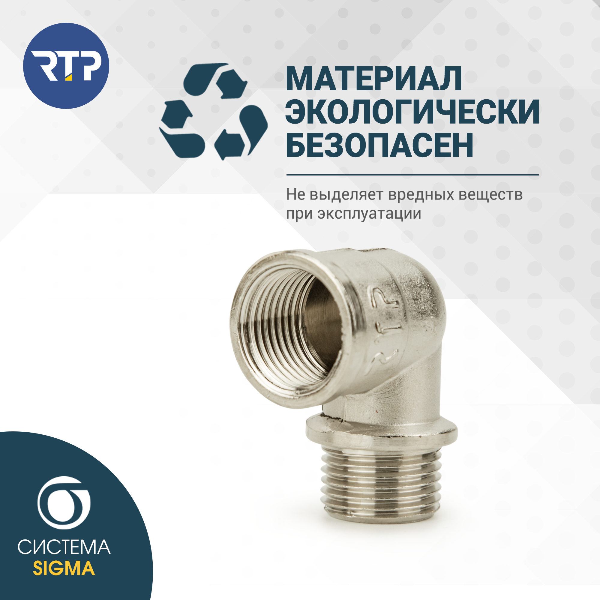 Купить Угольник 90° резьба, латунный никелированный RTP, ВР/НР, 1/2"