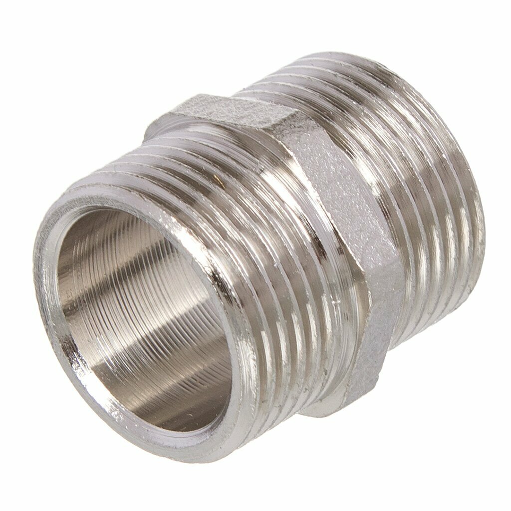 Ниппель прямой резьбовой латунный никелированный RTP, 1/2"