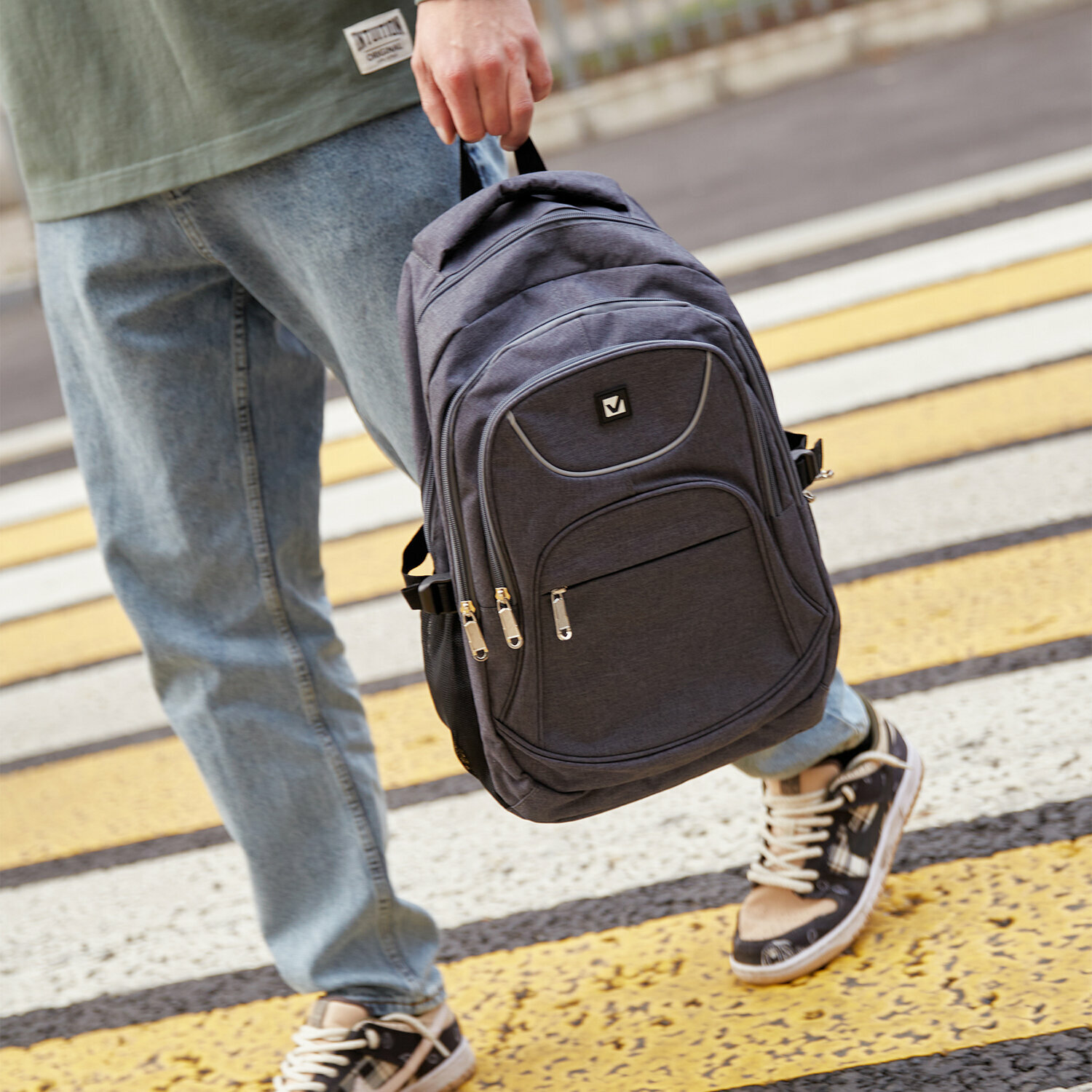 Рюкзак (ранец) мужской, женский, школьный, подростковый городской Brauberg Осень 30 л, серый, 225518