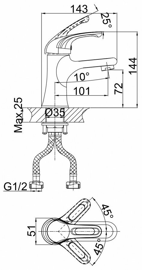 | Комплектация | смеситель - 1 шт., гибкая подводка - 2 шт., крепежная гайка - 1 шт., паспорт изделия - 1 шт., брендовая сумка - 1 шт. |