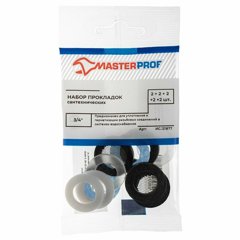 | Комплектация | Прокладка резиновая 3/4" - 2 штПрокладка из фторопласта 3/4" - 2 штПрокладка ПВХ 3/4" - 2 штПрокладка паронитовая безасбестовая 3/4" - 2 штПрокладка резиновая с сеточкой 3/4" - 2 шт |