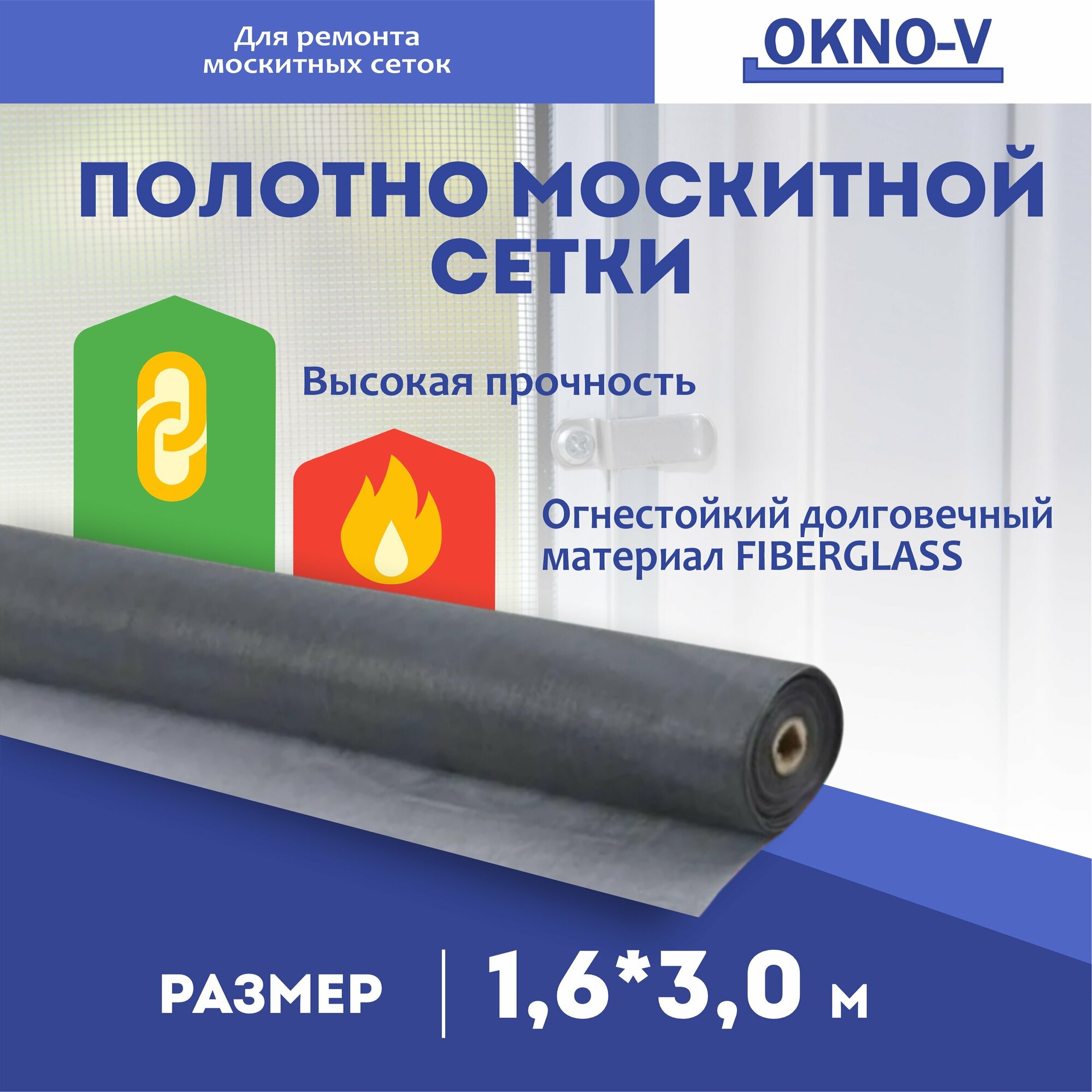 Москитная сетка серая "OKNO-V" - полотно 1,6 м*3м , серая интересное: