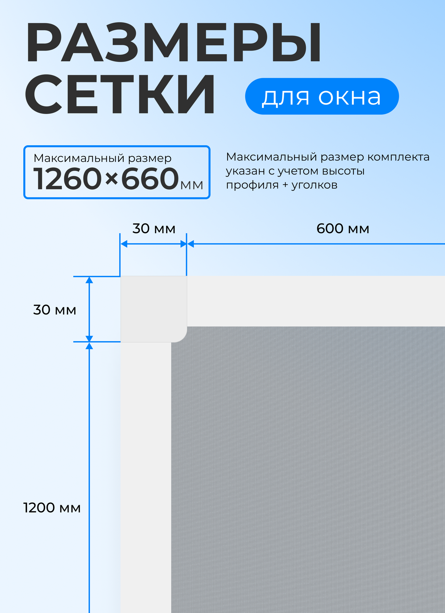 Купить Москитная сетка размером до 1260х660 мм. с креплением, комплект для сборки москитной сетки своими руками