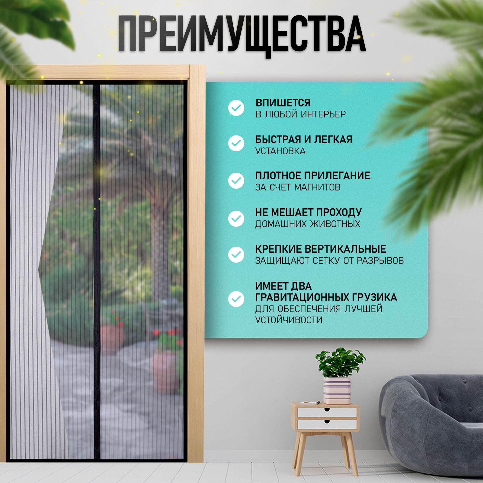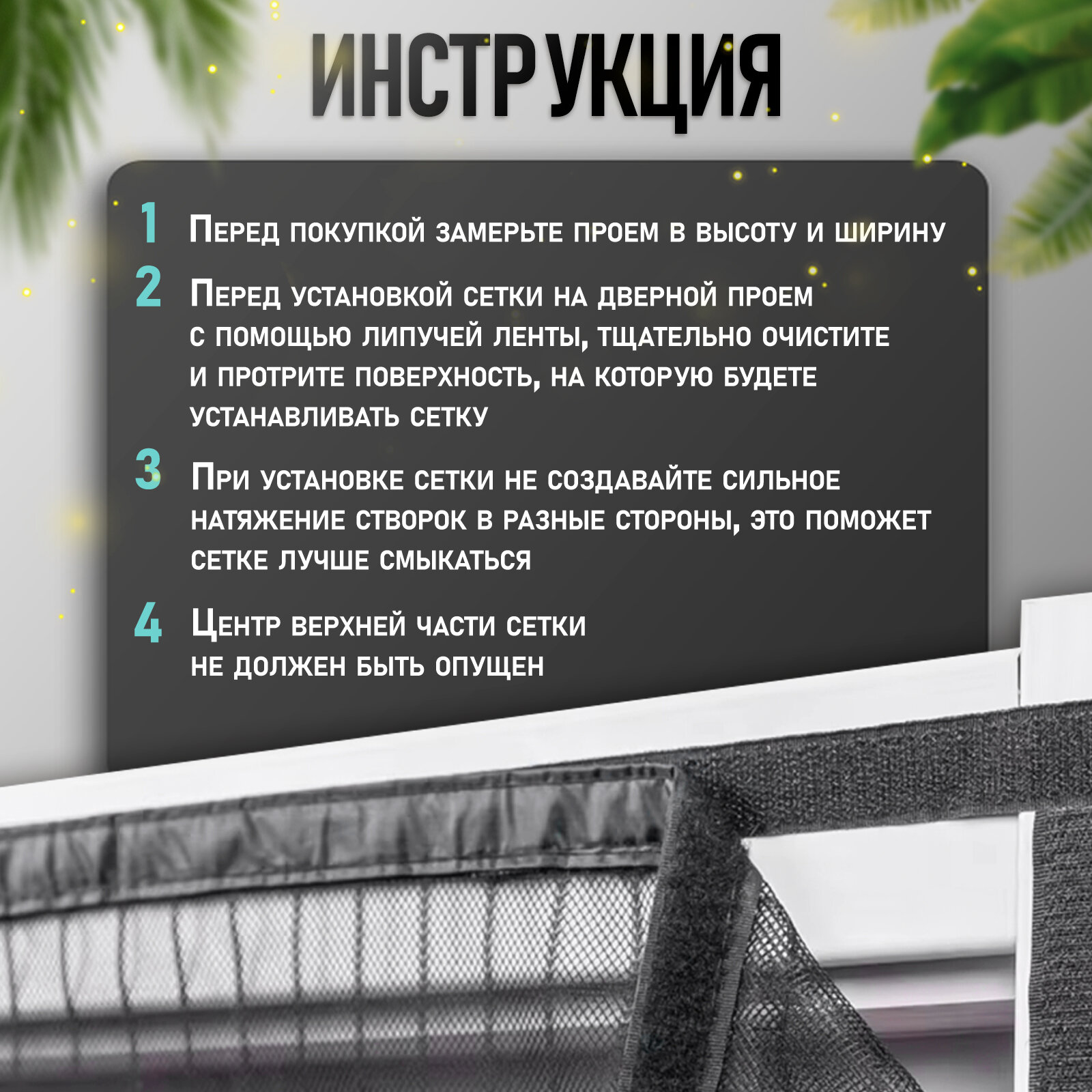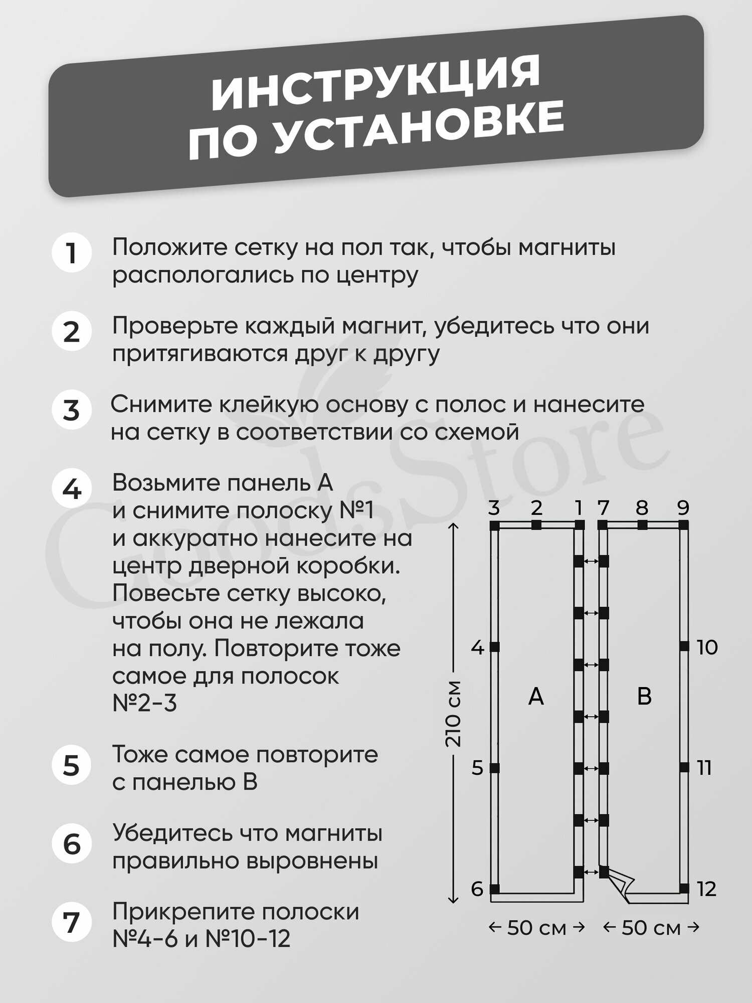 | Дополнительная информация | Москитная сетка на дверь имеет 26 магнитов по всей длине. |