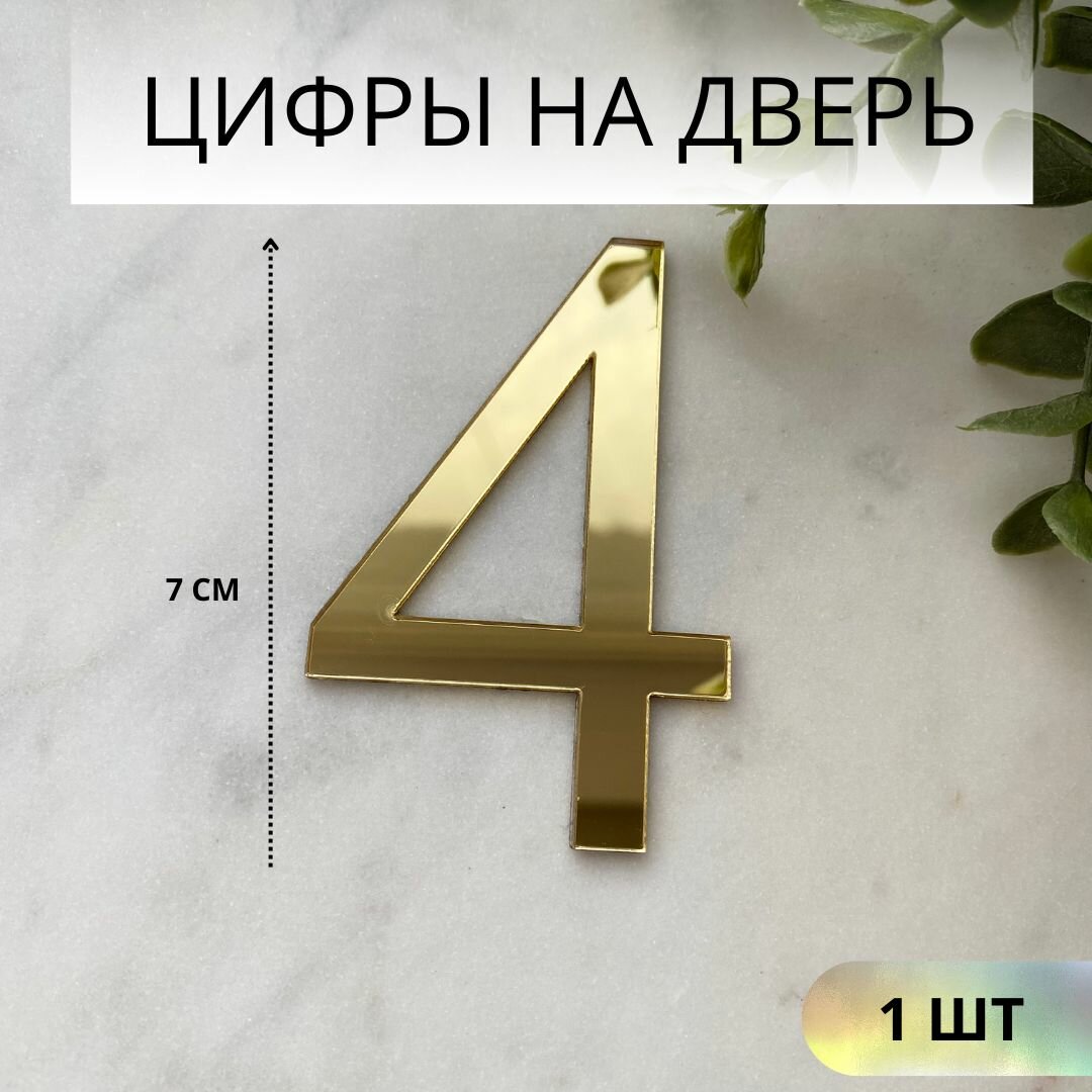 Цифры на дверь 4, номер дверной 4, золото интересное: