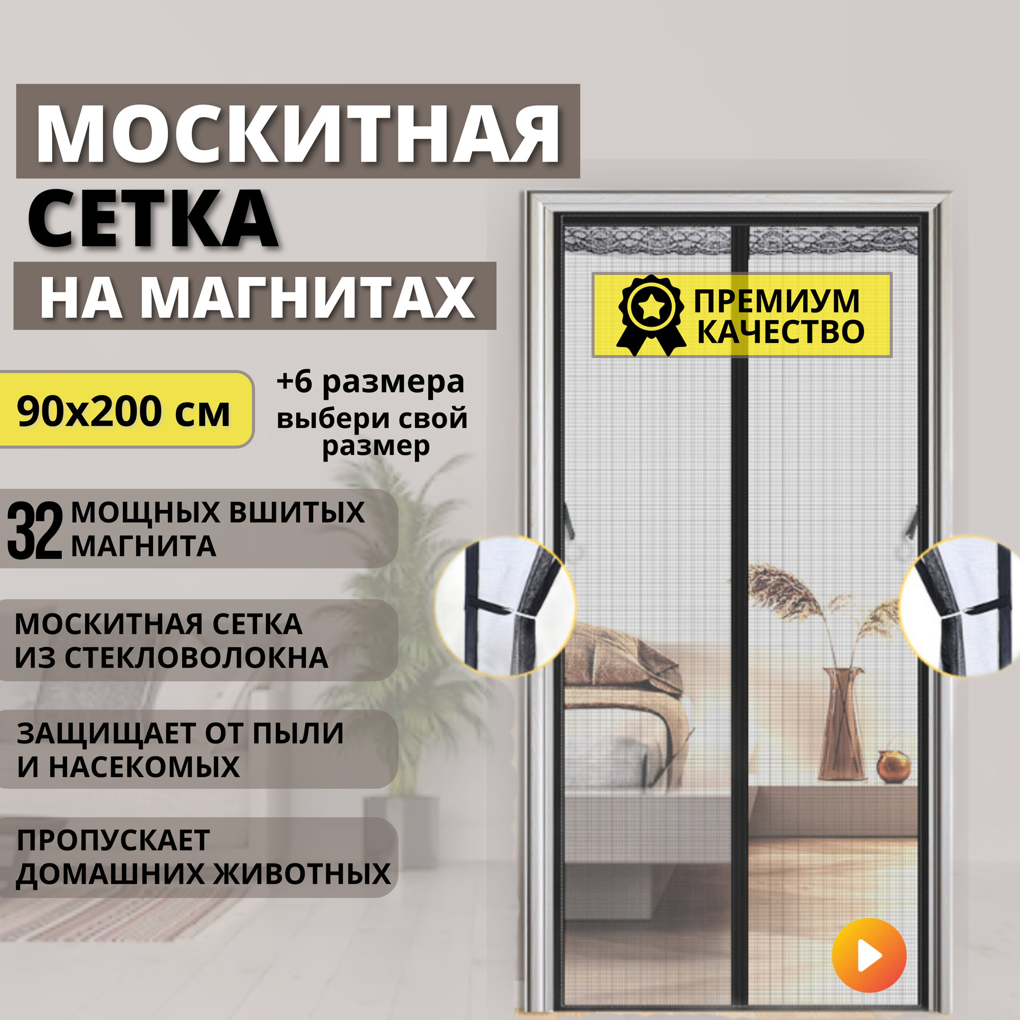 СохранитьМоскитная сетка плотная на дверь чёрная из стекловолокна на магнитах 90x200 cм от мух, комаров, пчел, мошек и пыли /Антимоскитная занавеска штора интересное: