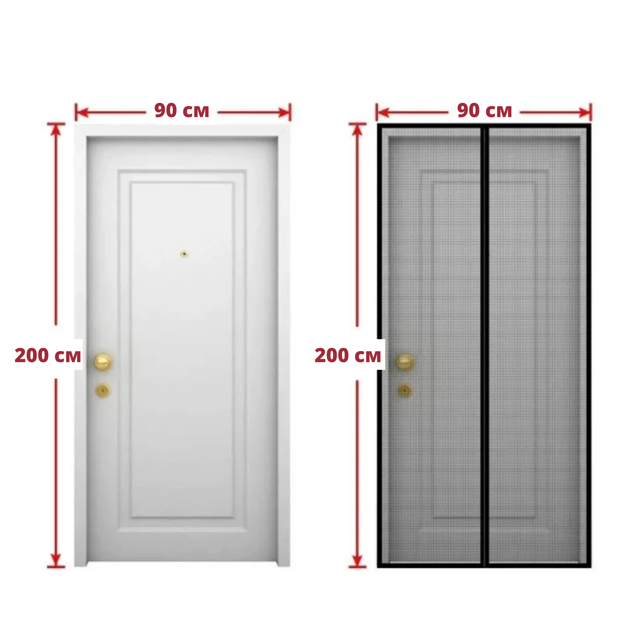 Москитная сетка плотная на дверь чёрная из стекловолокна на магнитах 90x205 cм от мух, комаров, пчел, мошек и пыли /Антимоскитная занавеска штора