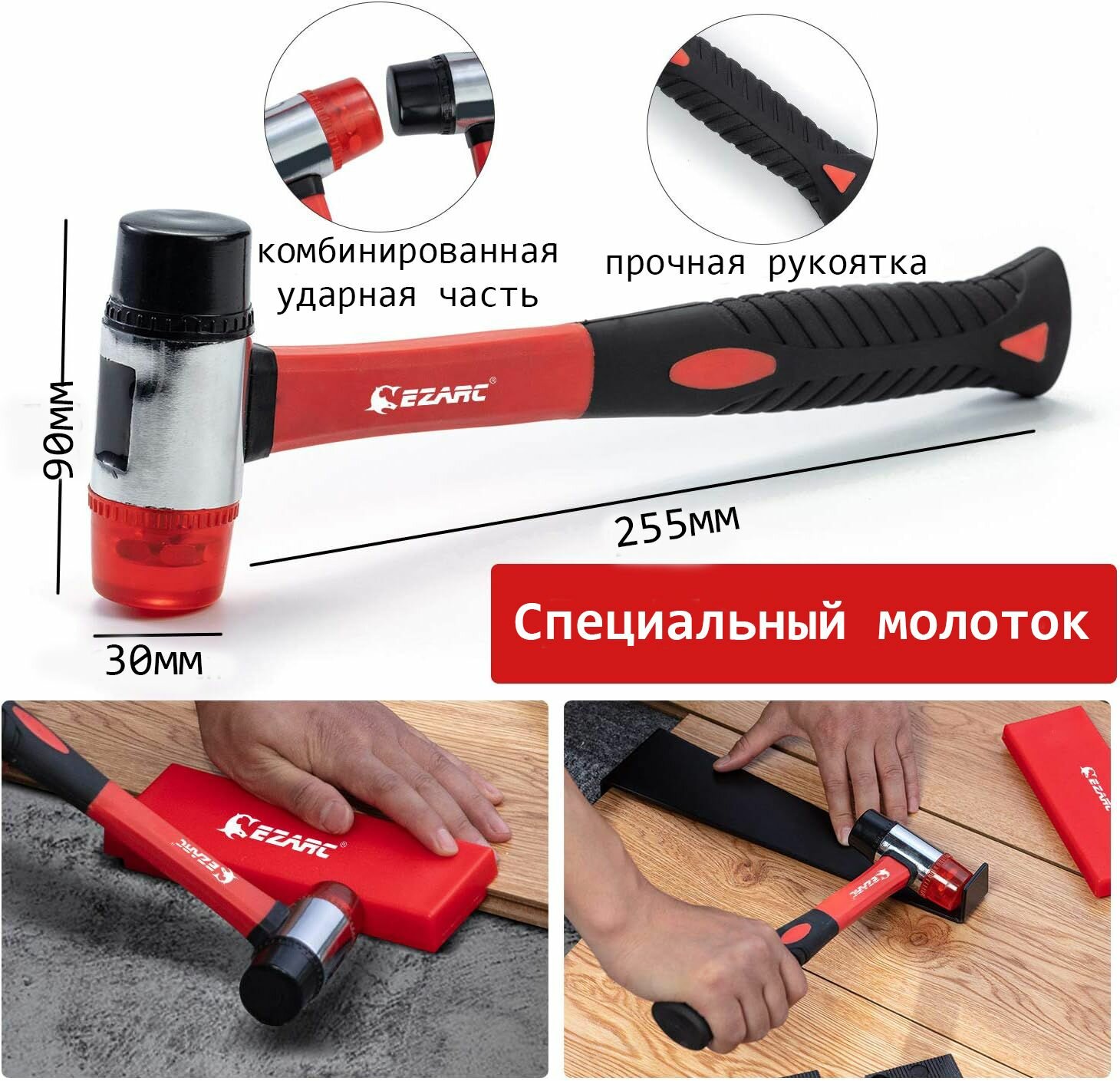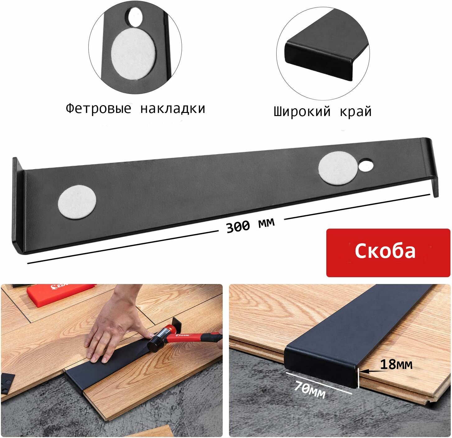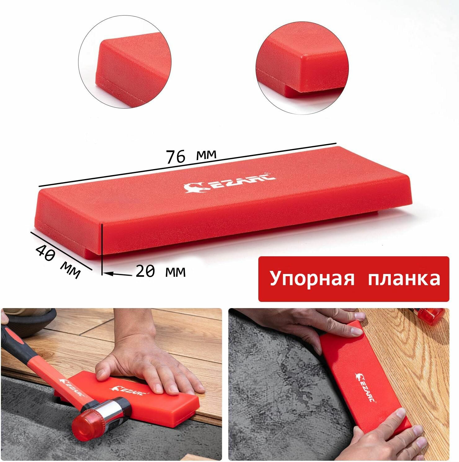Набор для укладки ламината и паркетной доски EZARC (молоток, планка, стяжка, клинья, наколенники) интересное: