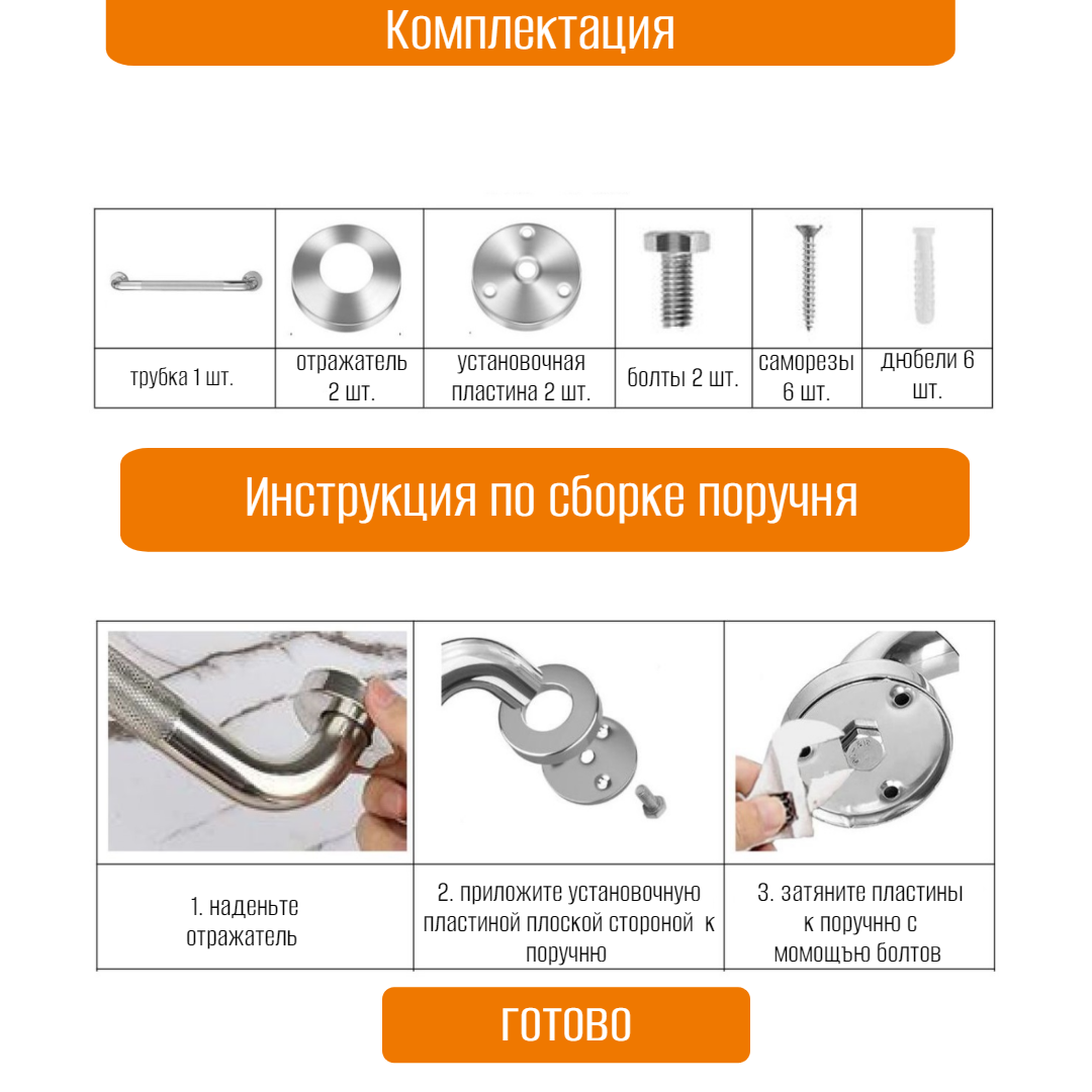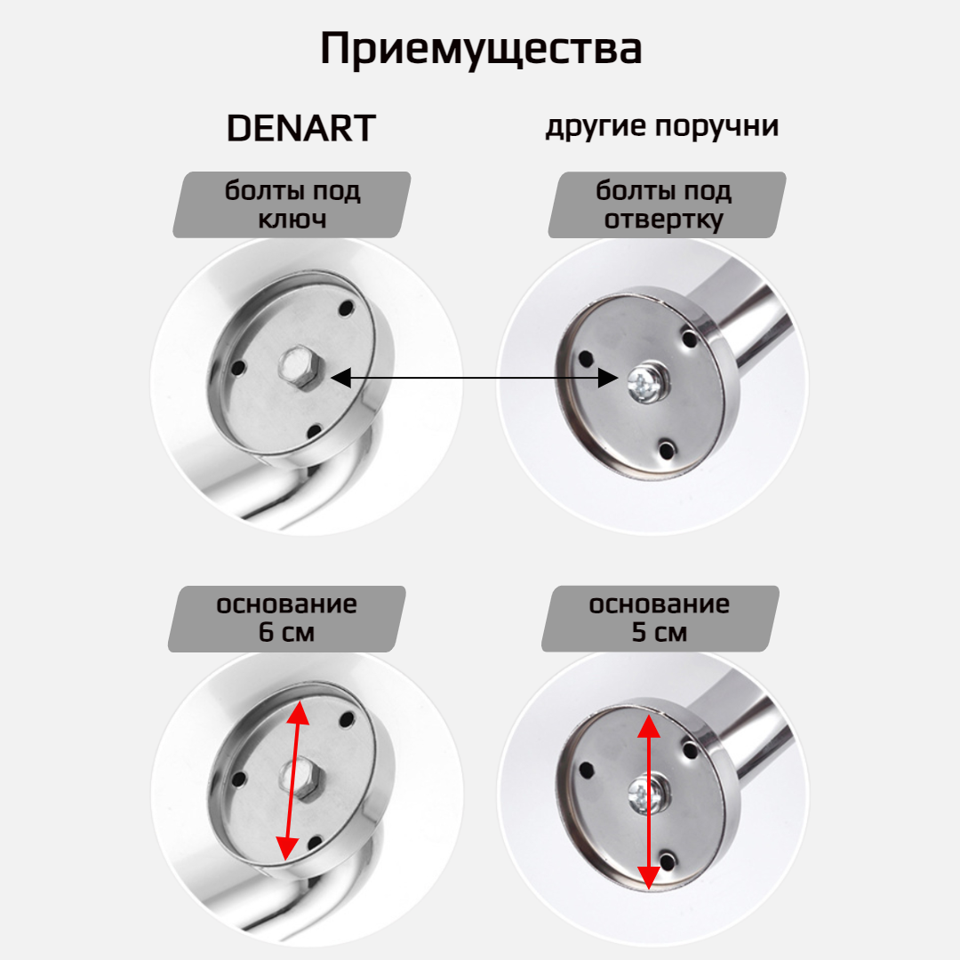 Поручень для ванной ручка для ванной для пожилых и инвалидов хром 40 см DENART интересное: