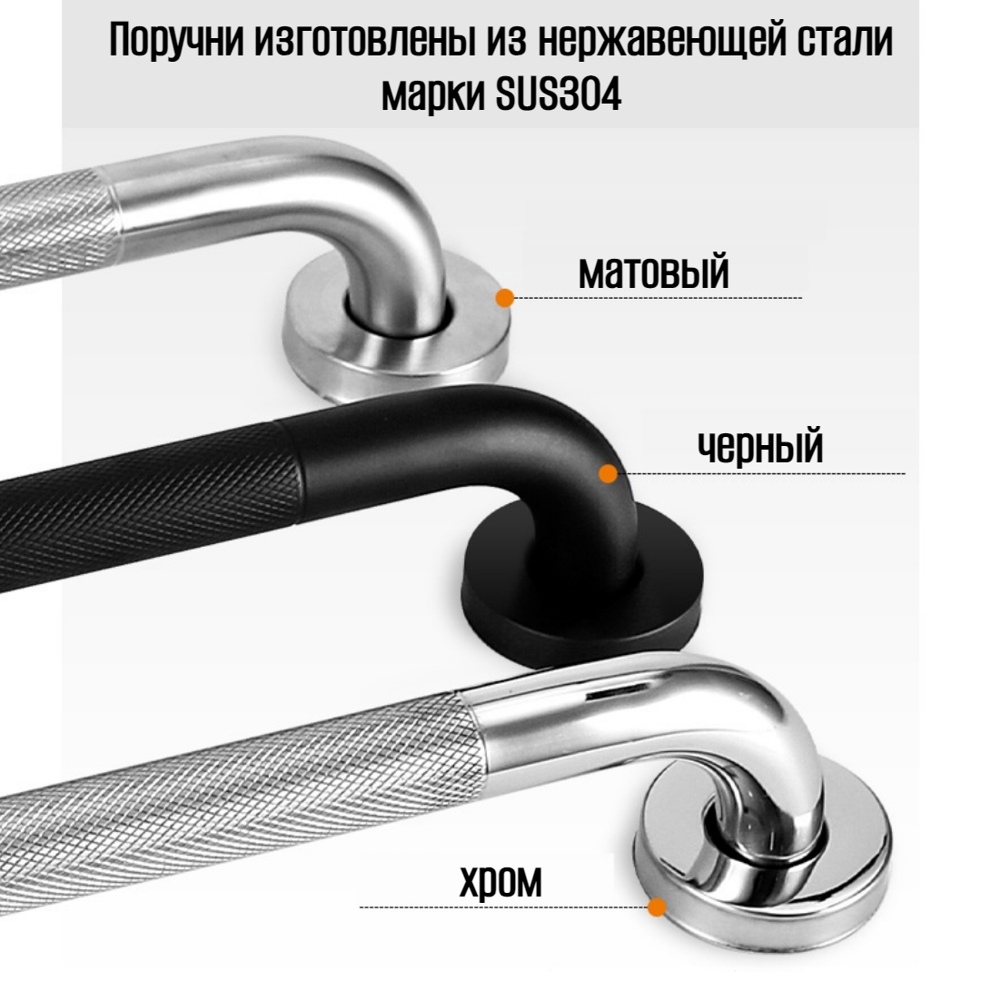 Ручка-поручень НАТЕКО в ванну и туалет, опора из нержавеющей стали, для пожилых и инвалидов