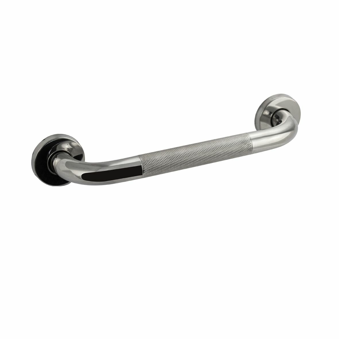 Поручень для ванной, из нержавеющей стали, прямой, с черной пластиковой накладкой, цвет хром.