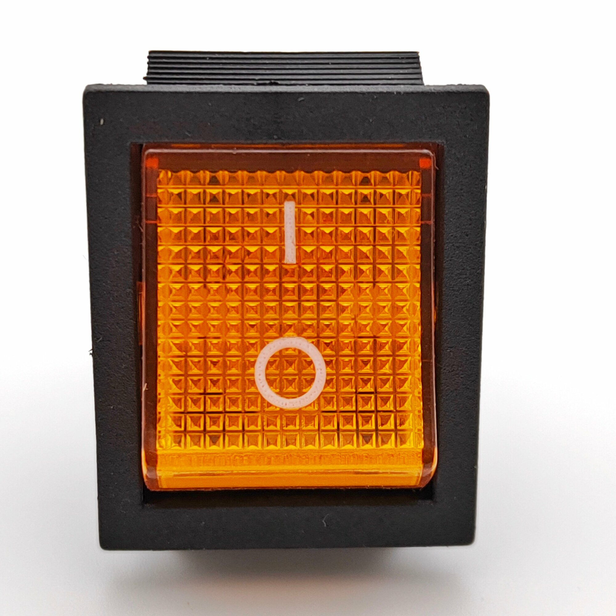 Купить Выключатель клавишный 250В, подсветка, 16А, (4с), ON-OFF, желтый (комплект с клеммами и термоусадкой)