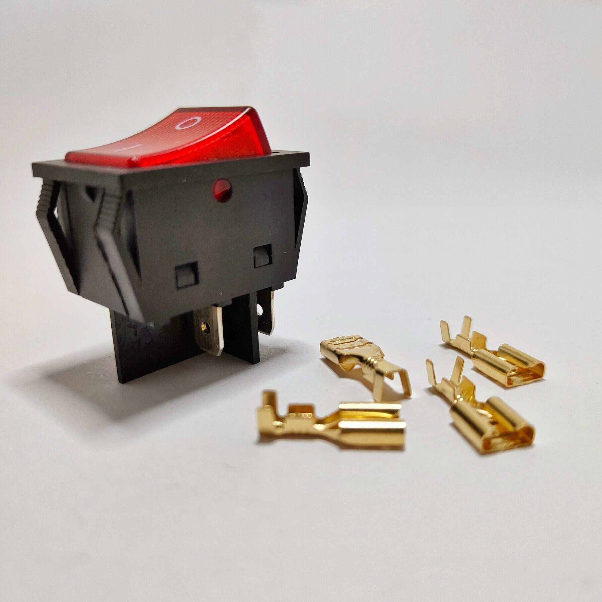 Купить Выключатель клавишный 250В мощный, подсветка, 30А, (4с) ON-OFF красный (комплект с клеммами и термоусадкой)