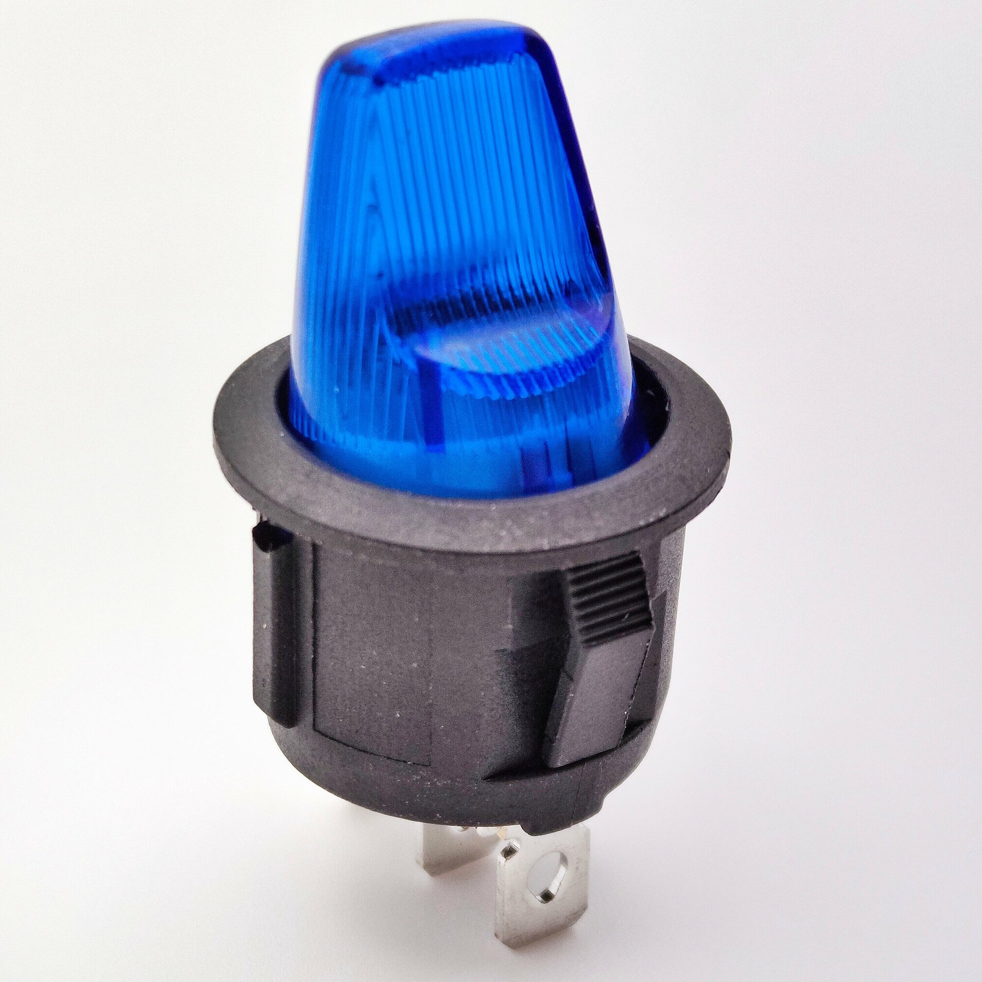 Купить Выключатель клавишный круглый объемный 12V 16А (3с) ON-OFF синий с подсветкой (комплект с клеммами и термоусадкой)