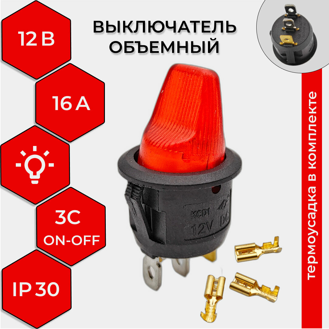 Выключатель клавишный круглый объемный 12V 16А (3с) ON-OFF красный с подсветкой (комплект с клеммами и термоусадкой) интересное:
