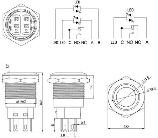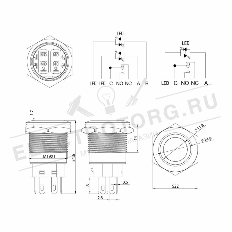 | Тип | нажимная кнопка (кнопочный выключатель/переключатель) в сборе |