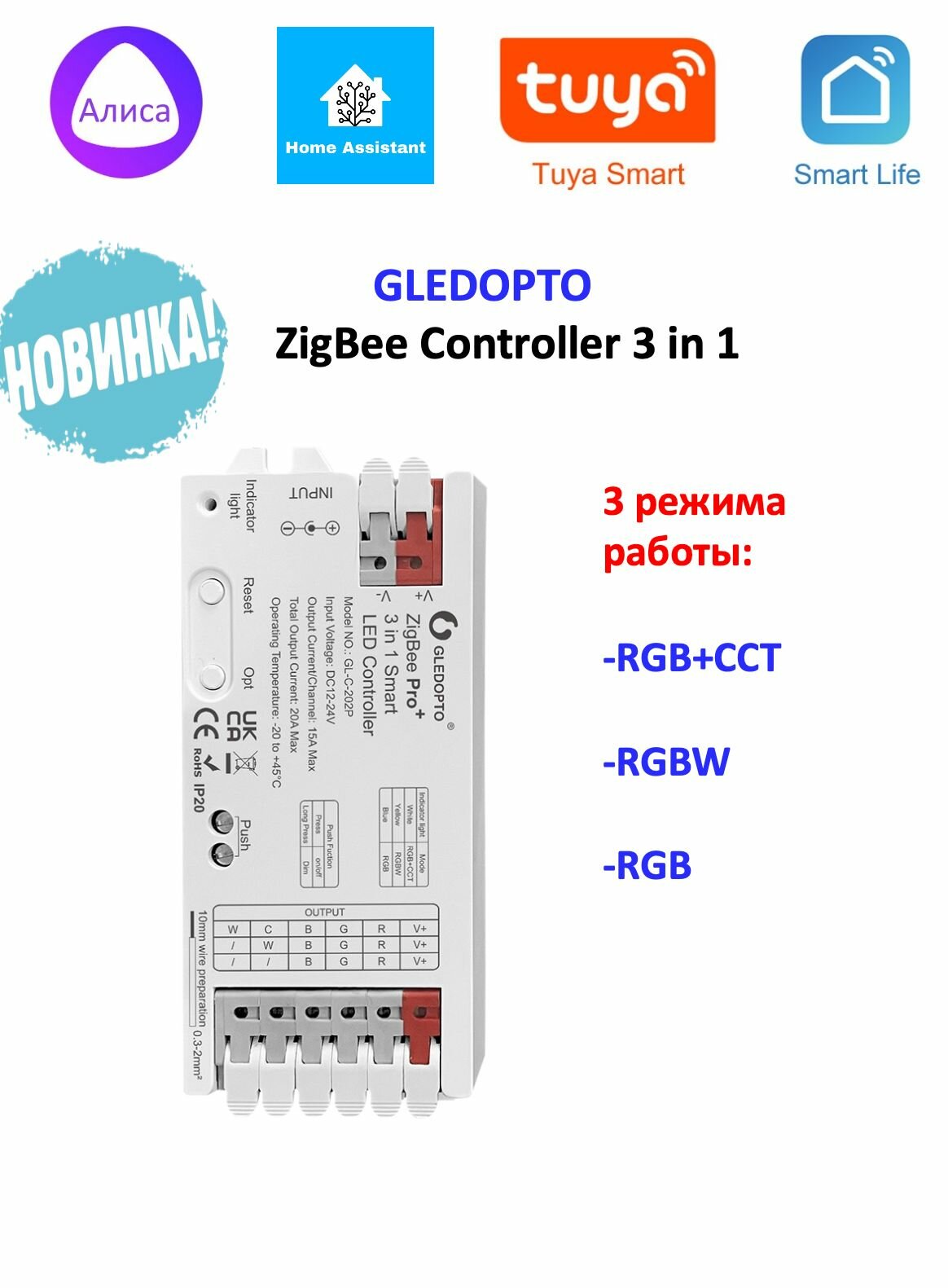 ZigBee Диммер GLEDOPTO 12-24V 3in1 RGB+CCT/RGB/RGBW интересное: