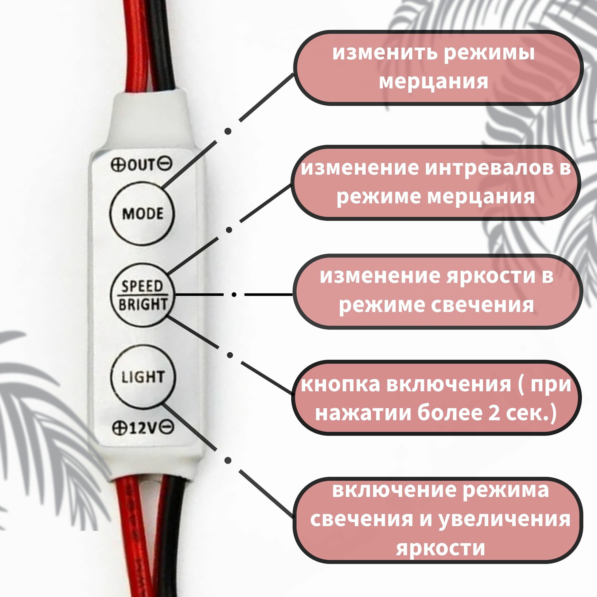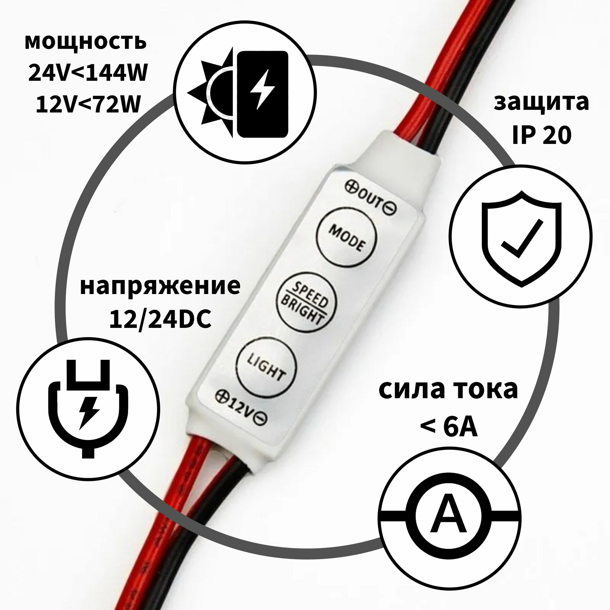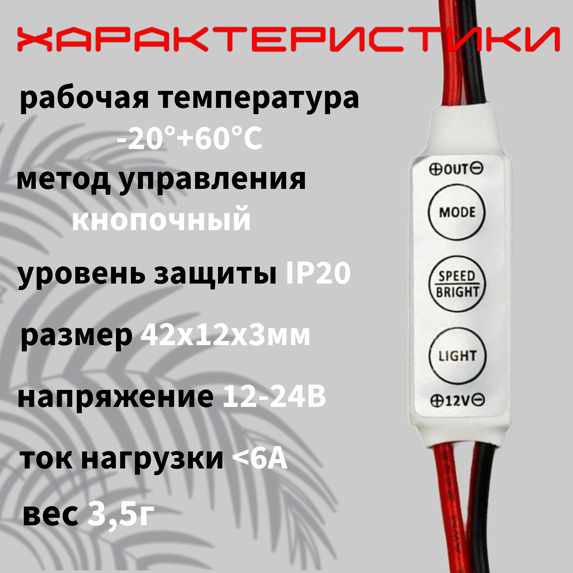 Диммер для светодиодной ленты 12В мини-Led 72-144W, 3 кнопки, 12-24V, RF управление интересное: