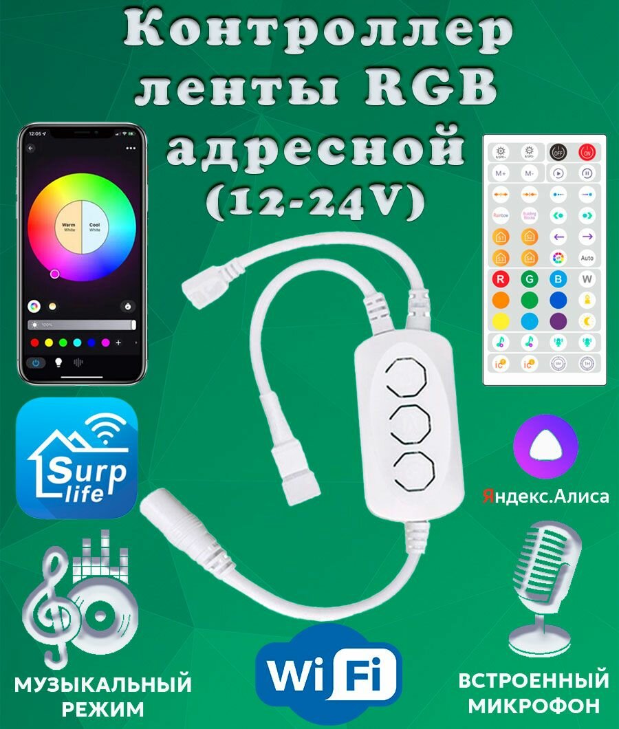 Умный WIFI контроллер LDL48 для адресной (цифровой, трёхконтактной) светодиодной ленты 12-24 В. Управление Пульт ДУ, Яндекс.Алиса интересное: