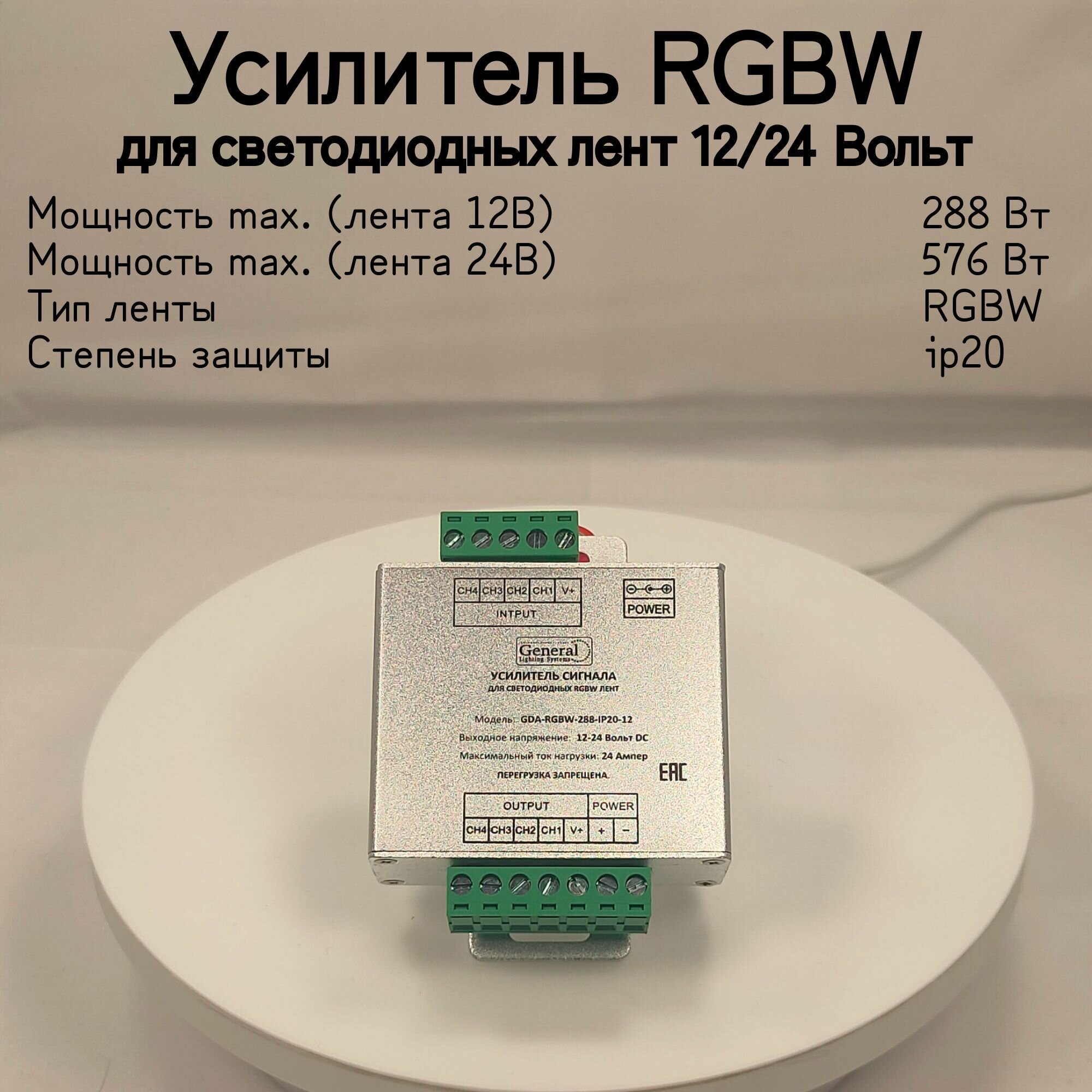 General Усилитель для RGB+W ленты 12/24V 288W/576W 24А GDA-RGBW-288-IP20-12 511920 интересное: