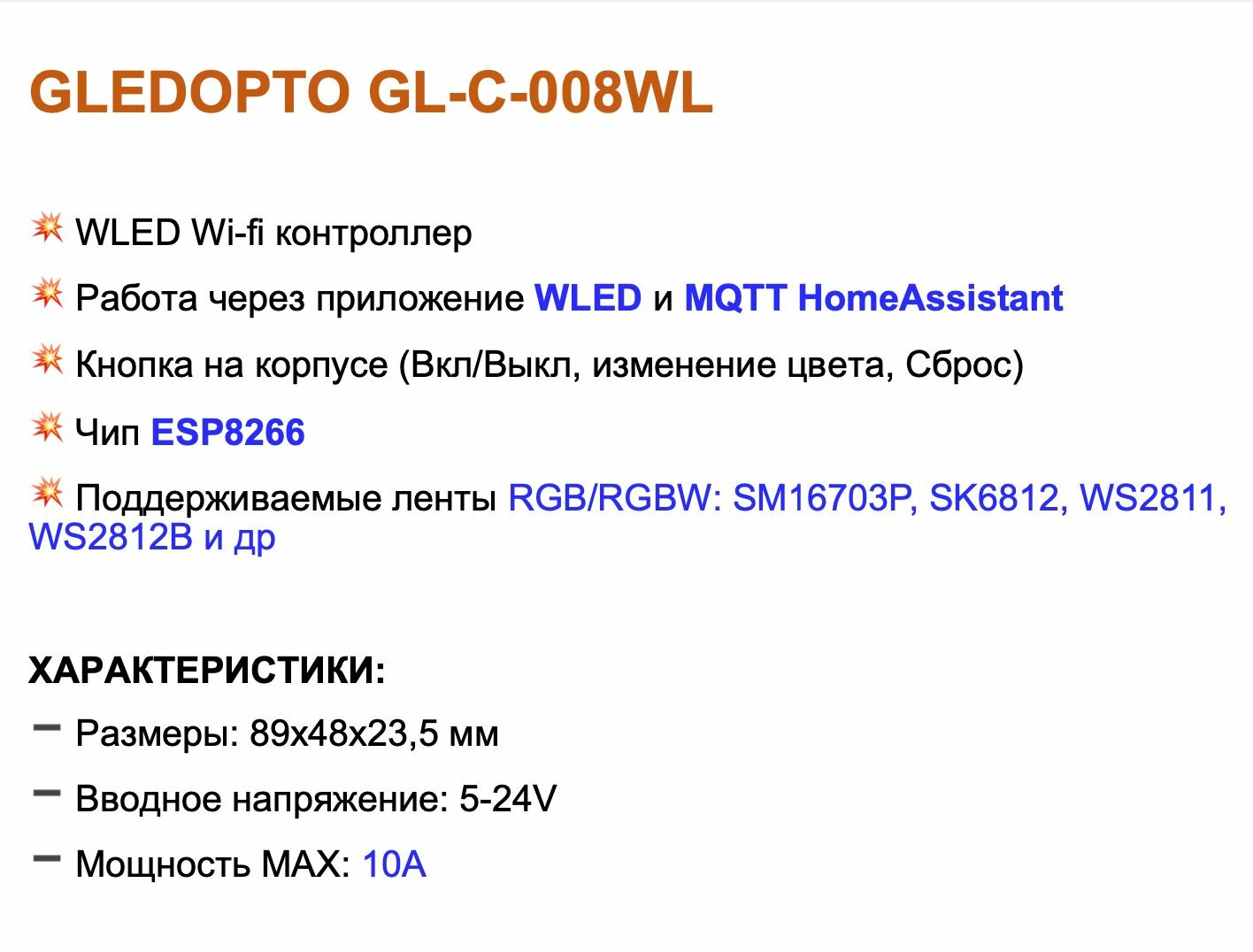 WLED Wi-fi Диммер 5-24V Gledopto (для адресной ленты) интересное: