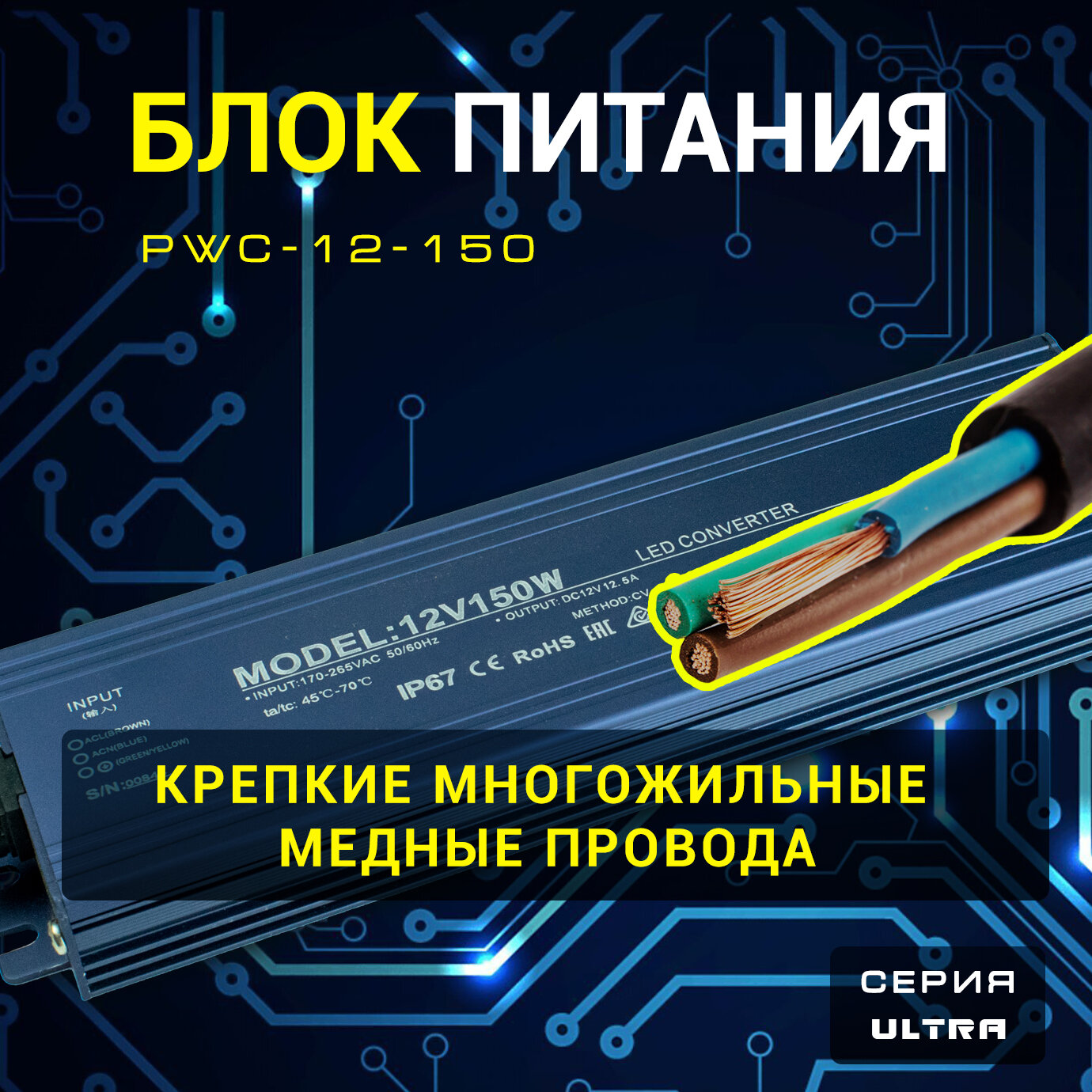 Блок питания влагозащищенный Led-Book PWC 12 Вольт 150 Ватт интересное: