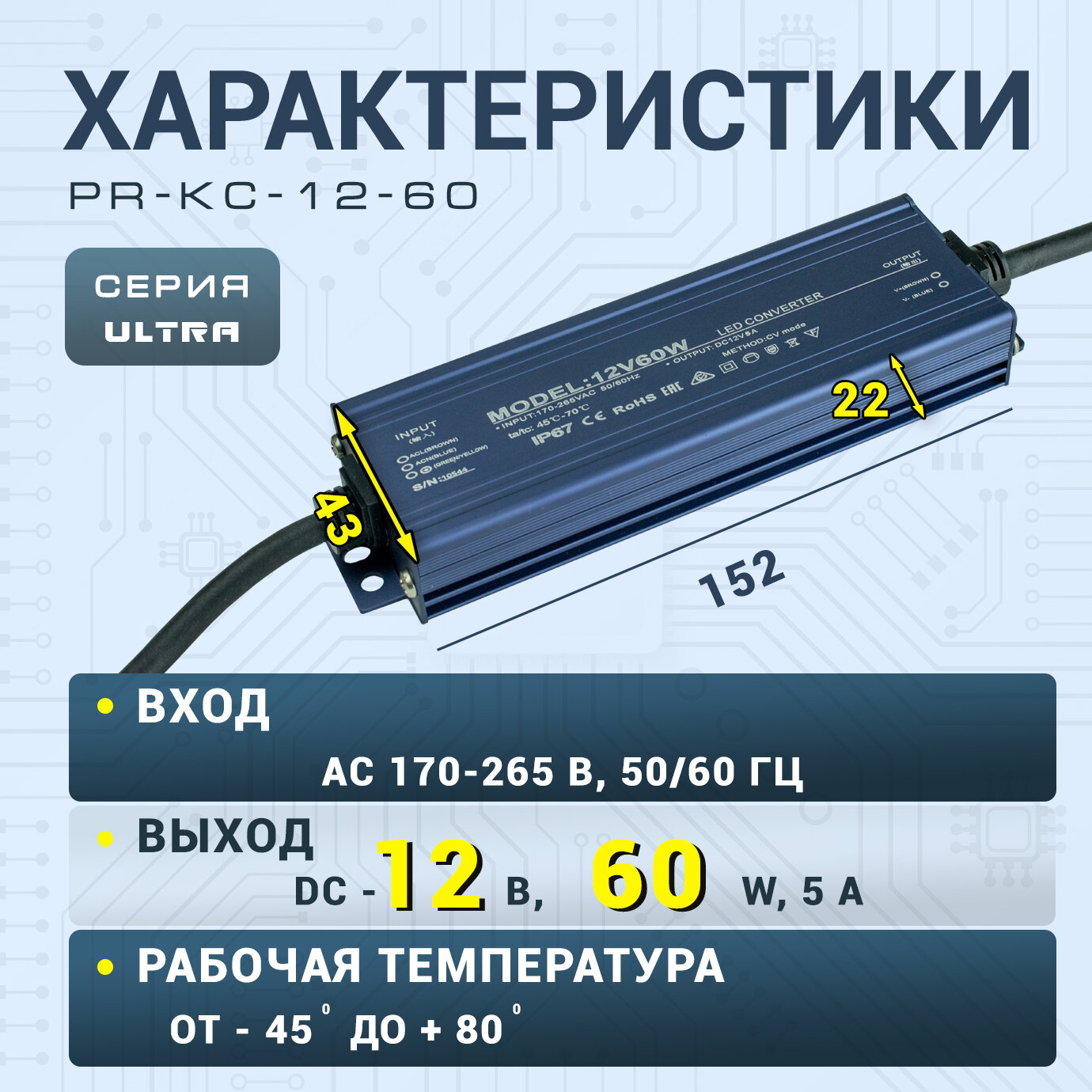 Блок питания влагозащищенный Led-Book PWC 12 Вольт 60 Ватт интересное: