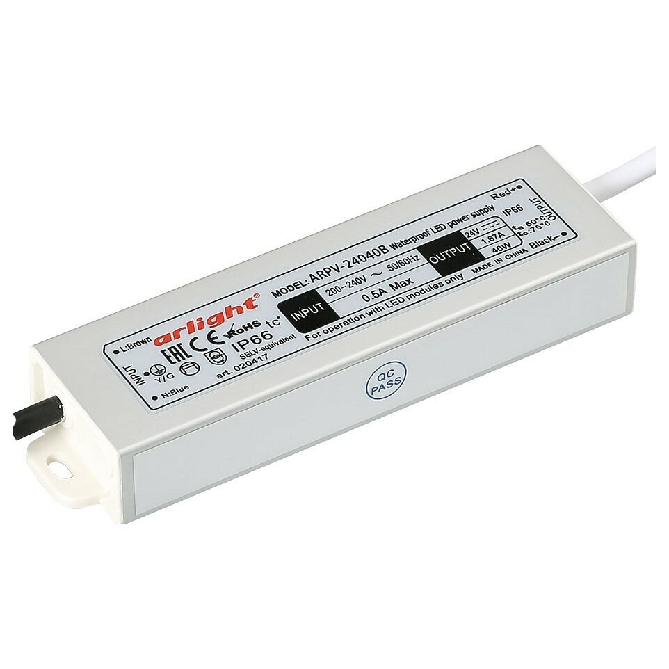 020417 Блок питания ARPV-24040-B (24V, 1.7A, 40W) (Arlight, IP67 Металл, 3 года)