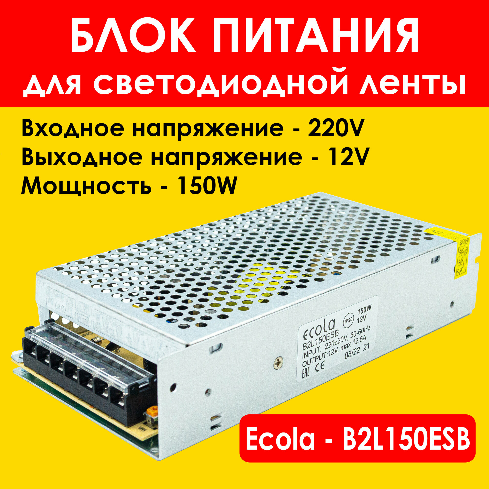Блок питания 150вт / 12в Ecola, для LED-ленты, светодиодной ленты, люстры, лампы, модулей Экола (драйвер 150W /12V) интересное: