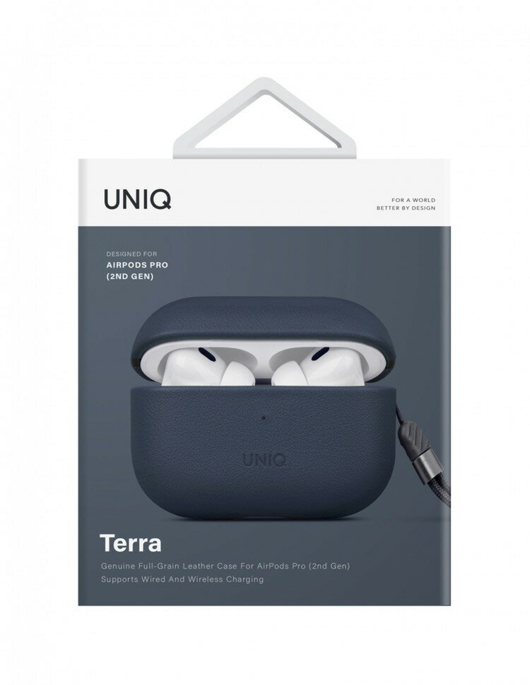 Кожаный чехол Uniq Terra Genuine Leather для AirPods Pro 2 (2022), синий / space blue