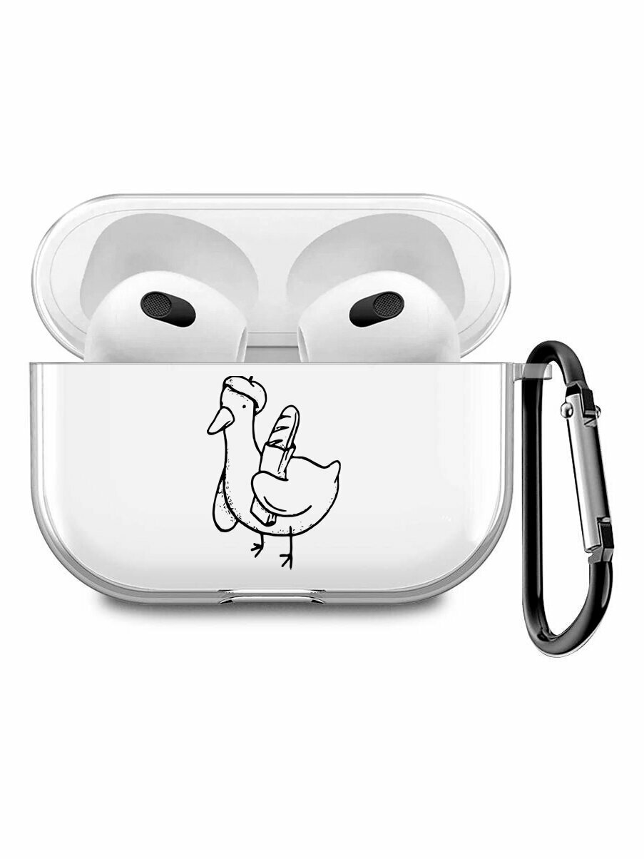 Купить Силиконовый прозрачный чехол для наушников Apple AirPods 3 / АирПодс 3 с 3D принтом "French Goose"