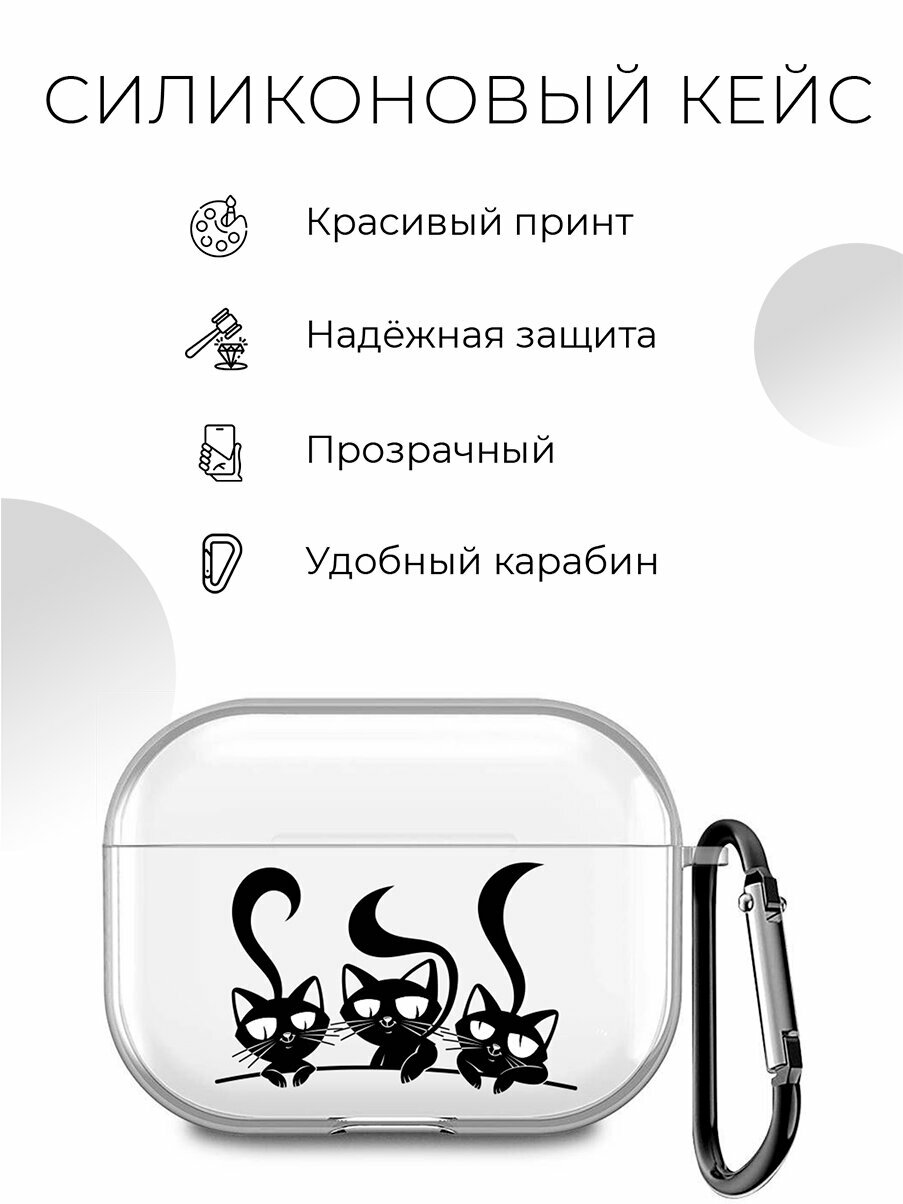 Силиконовый прозрачный чехол для наушников Apple AirPods 3 / АирПодс 3 с 3D принтом "Meow"