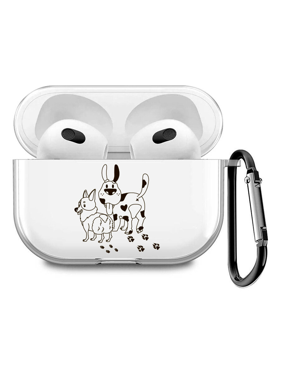 СохранитьСиликоновый прозрачный чехол для наушников Apple AirPods 3 / АирПодс 3 с 3D принтом "Funny doggies" интересное: