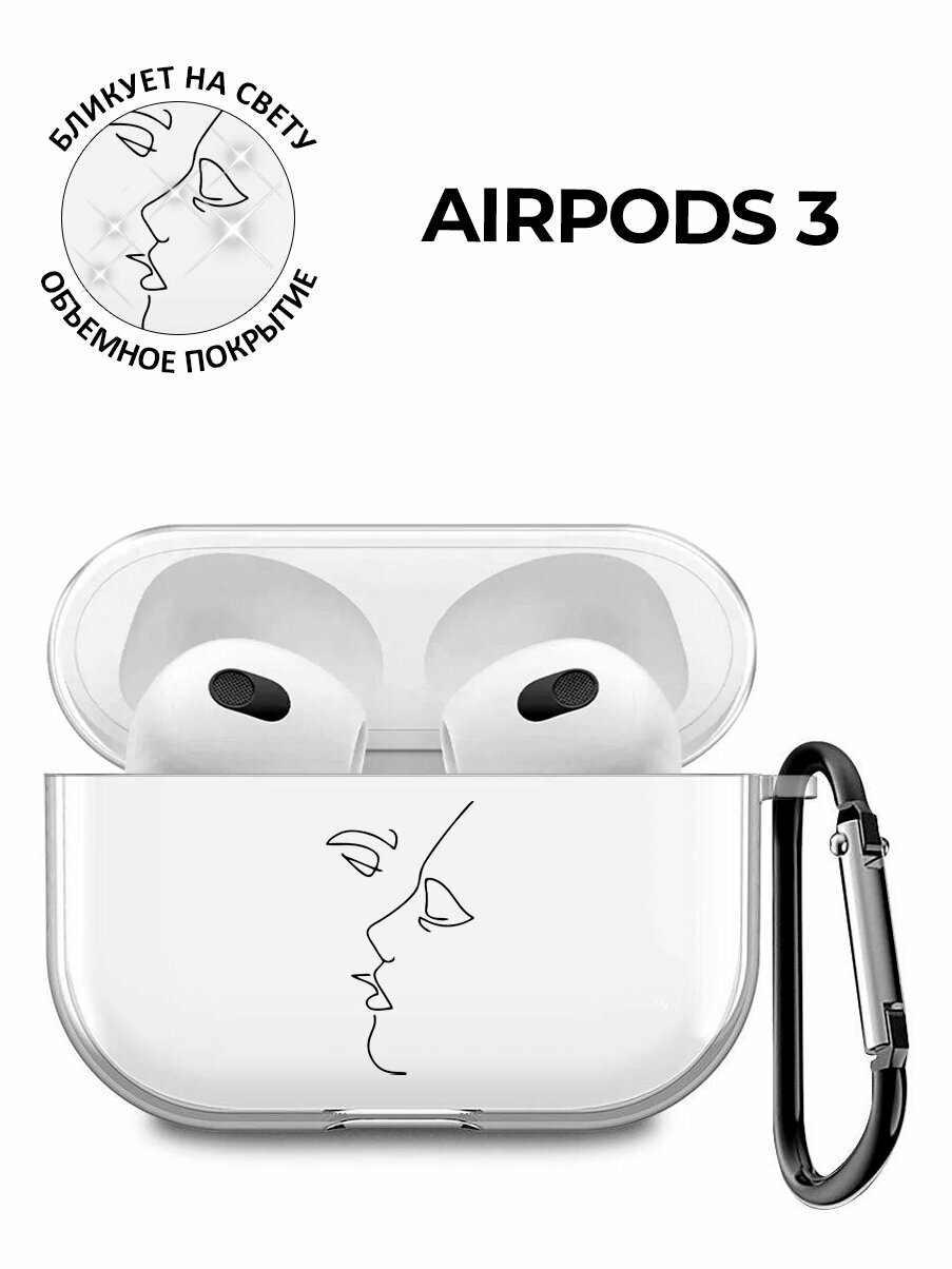 СохранитьСиликоновый прозрачный чехол для наушников Apple AirPods 3 / АирПодс 3 с 3D принтом "Faces" интересное: