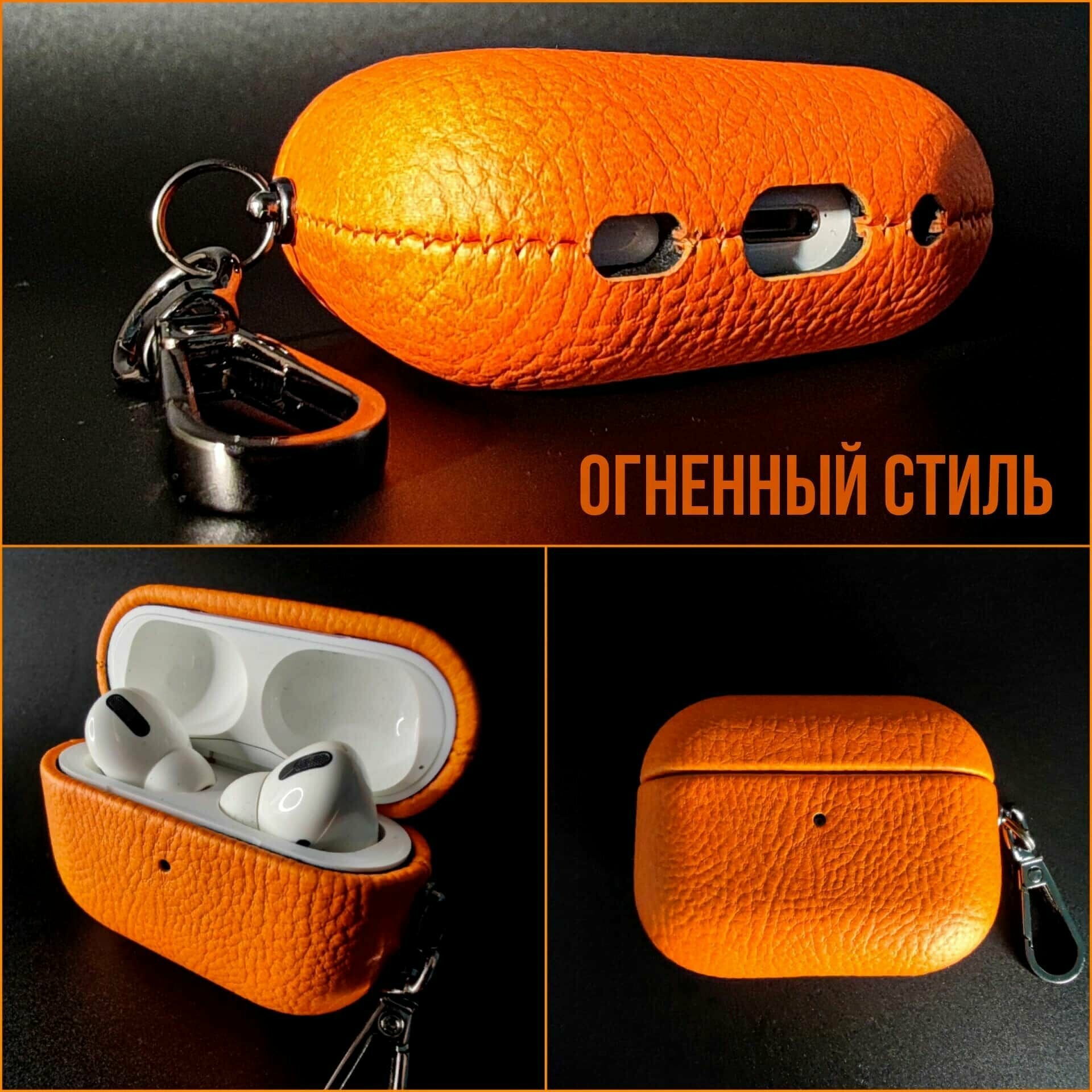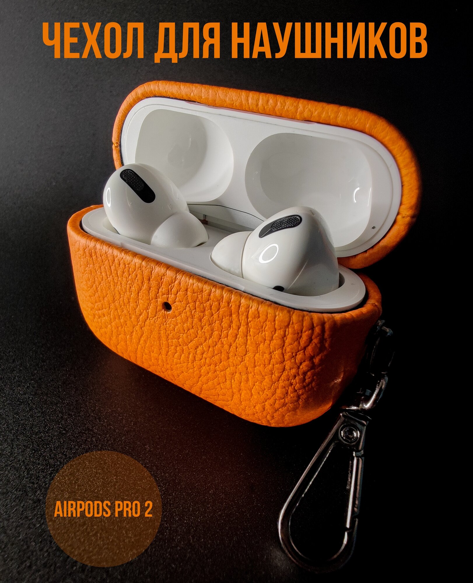 Чехол для наушников Apple Airpods Pro 2 кожаный с карабином рыжий интересное: