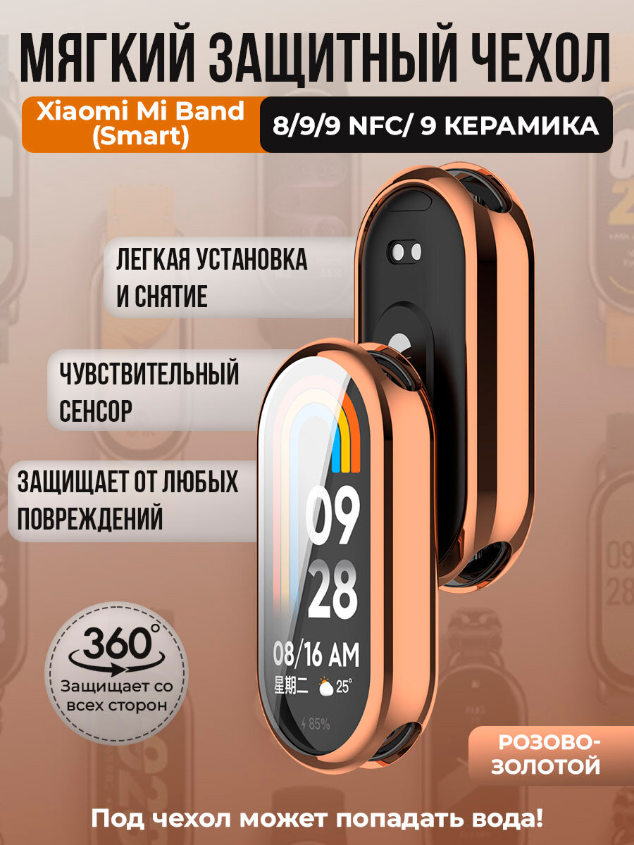 СохранитьМягкий защитный чехол TPU для Xiaomi Mi Band 8/ 9/ 9 NFC/ 9 Керамический корпус, розово-золотой интересное: