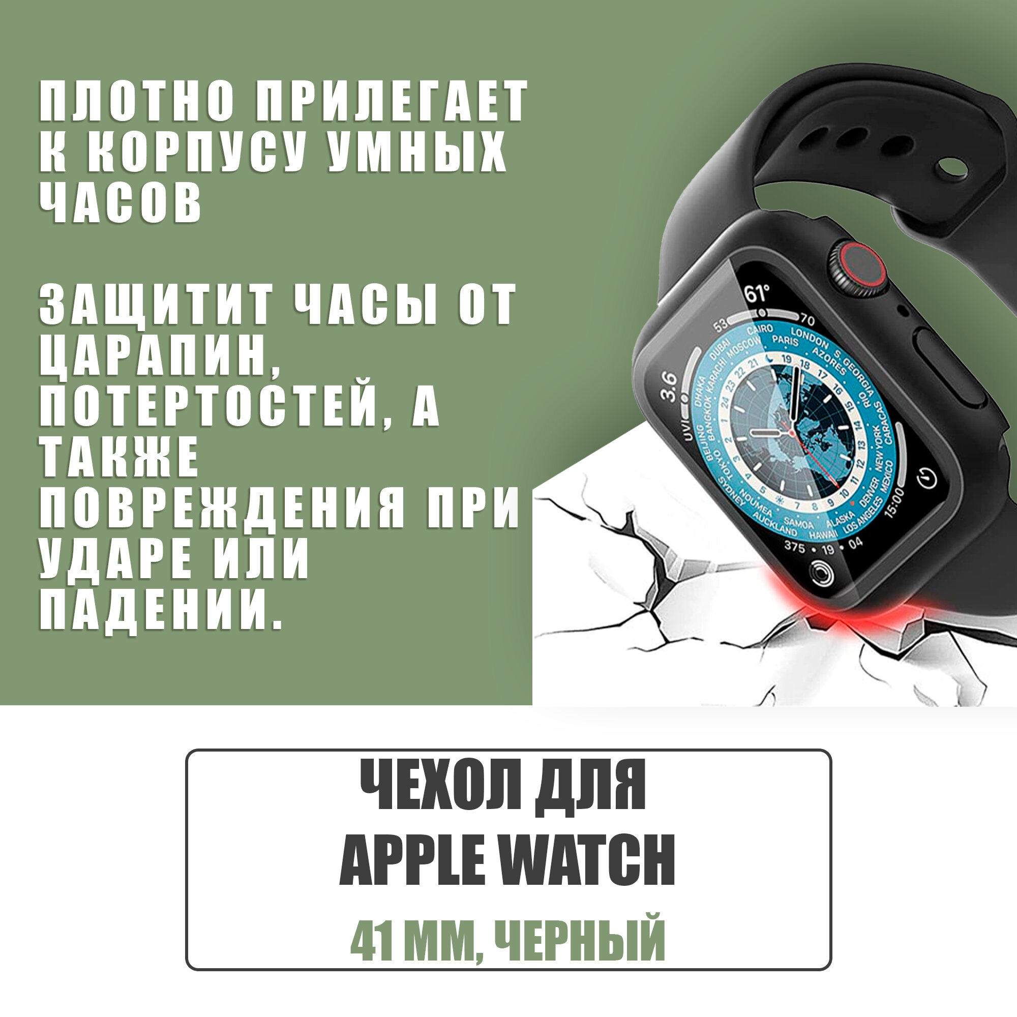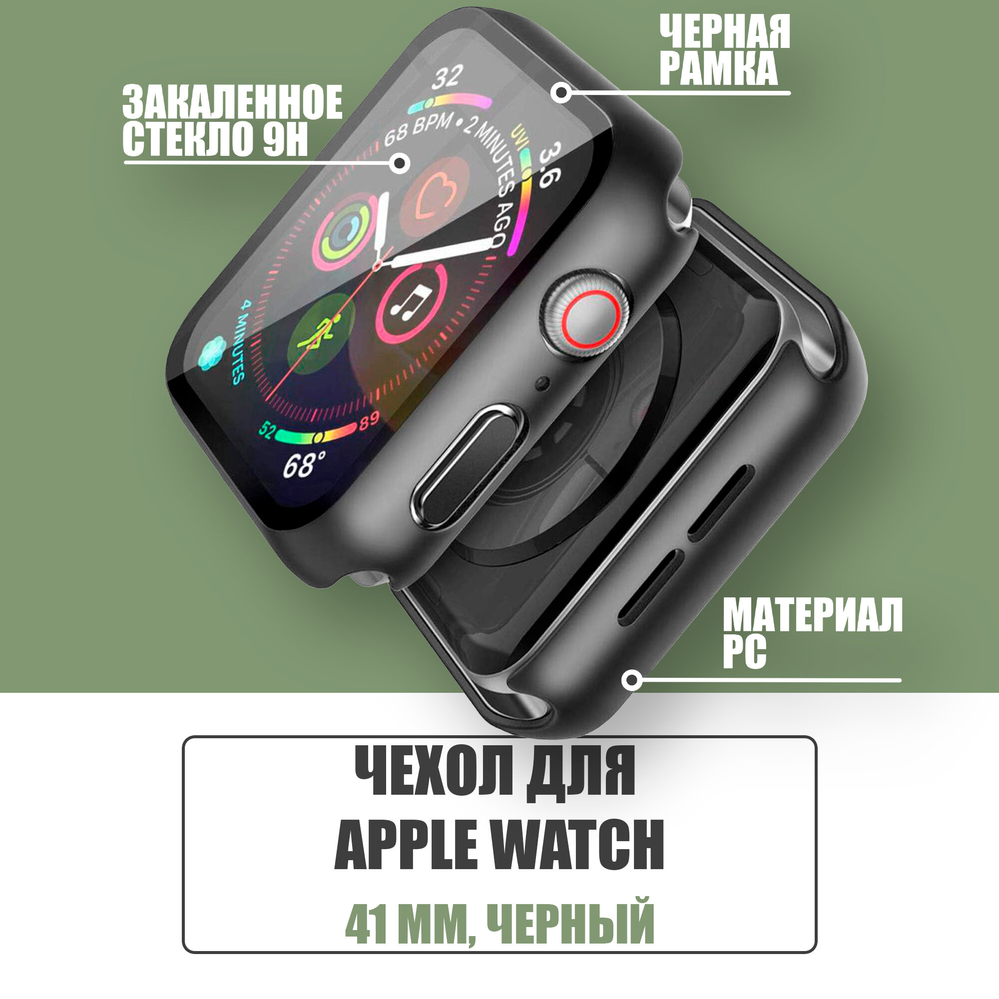 Защитный чехол стекло на часы Apple Watch 41 mm / Стекло на Апл Вотч 7, 8, Черный интересное: