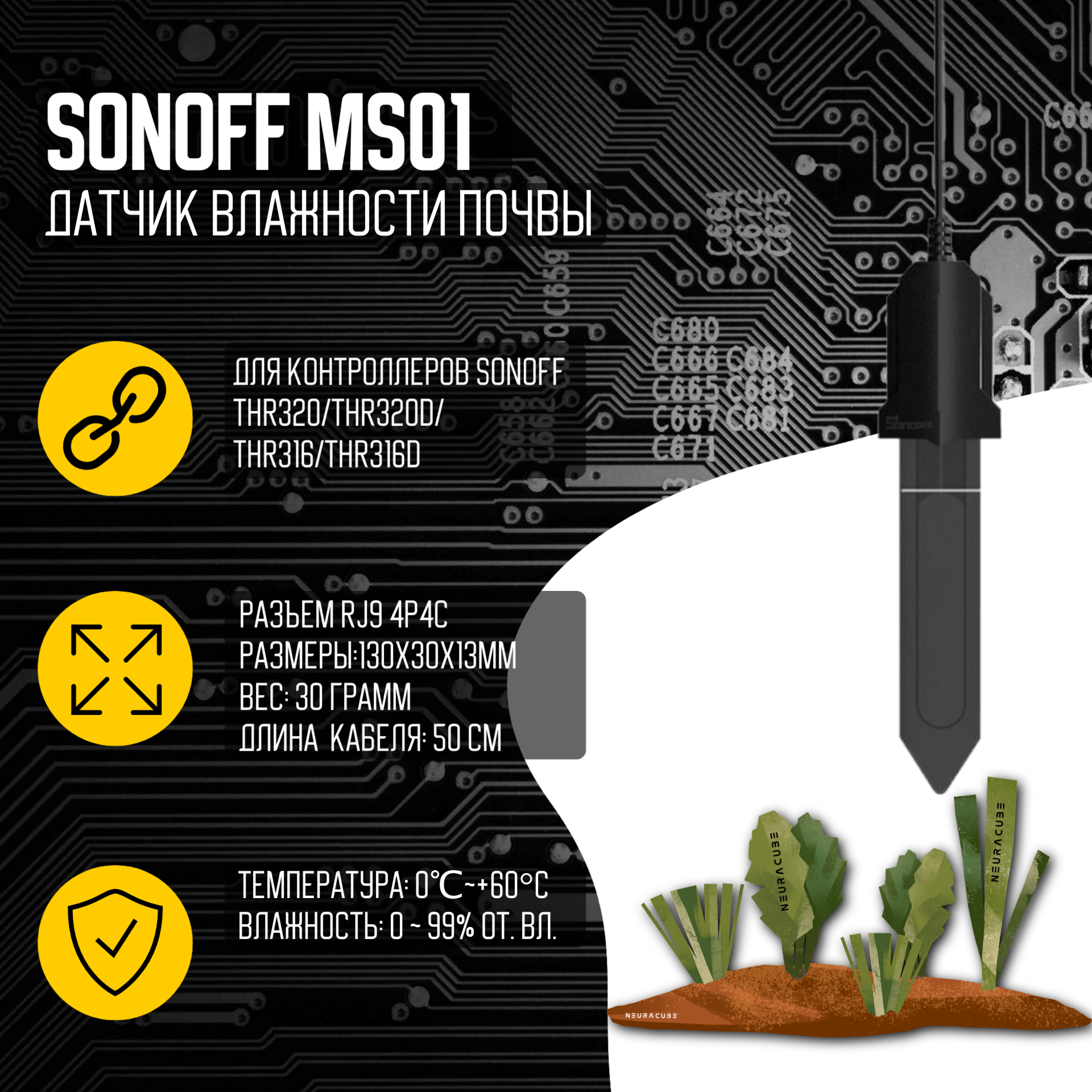 Купить Датчик влажности почвы Sonoff MS01 (для реле TH Elite/Origin)