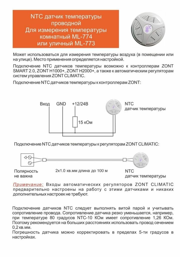Датчик температуры комнатный ZONT МЛ-774 (NTC) проводной интересное:
