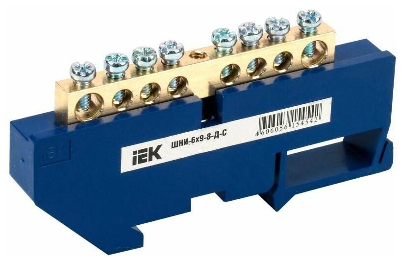 Шина IEK / ИЭК ШНИ-6х9-8-Д-С нулевая синий изолятор, контактная группа качественная латунь, 64х42х88.5мм, DIN-рейка, 1×8 100А, YNN10-69-8D-K07 / соединитель проводов (комплект из 6 шт)