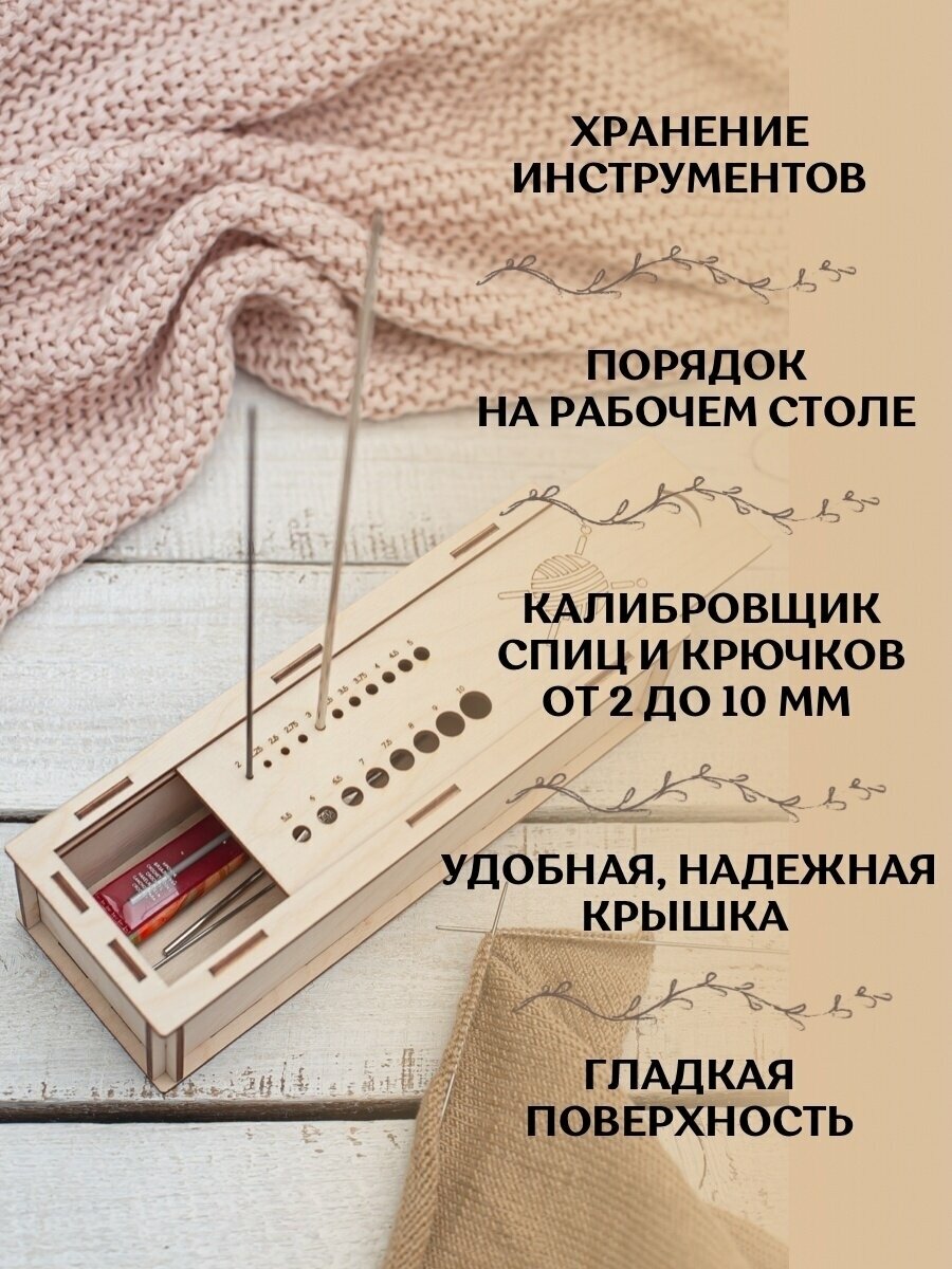Пенал для крючков деревянный, хранение спиц, органайзер для вязания интересное: