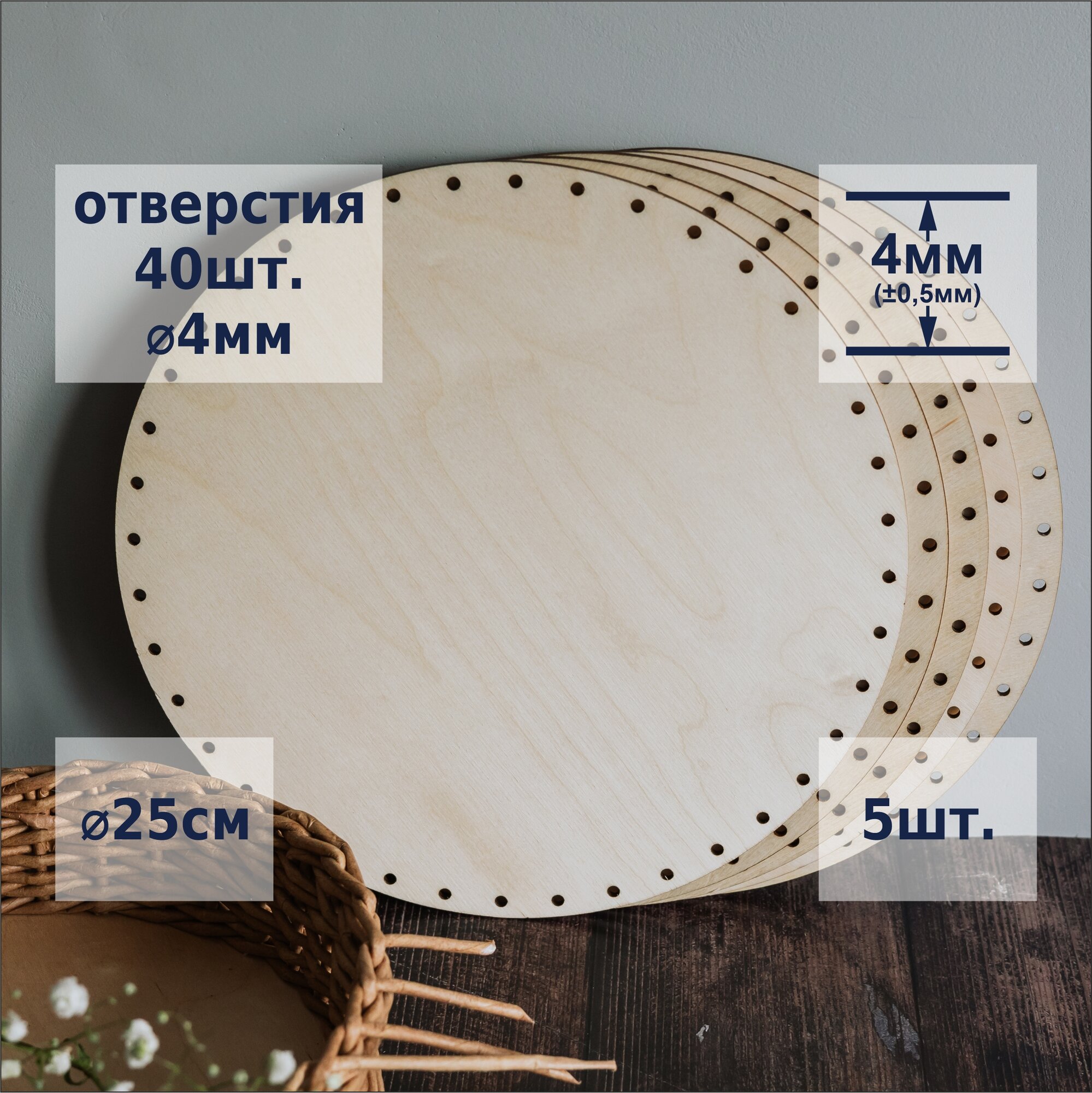 Купить ⌀25см 5шт отверстия ⌀4мм. Донышко круглое для плетения корзин из бумажной лозы толщина 4мм
