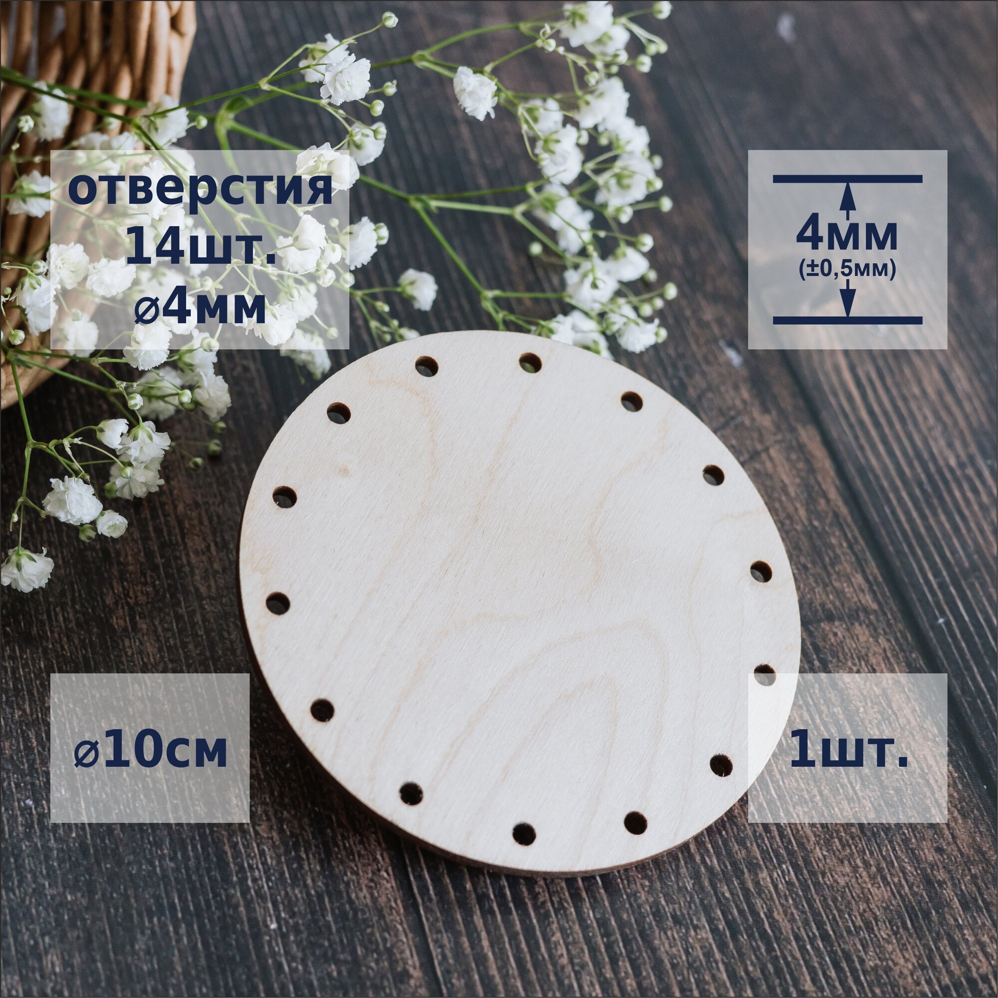 ⌀ 10см 10шт отверстия ⌀4мм. Донышко круглое для плетения корзин из бумажной лозы толщина 4мм