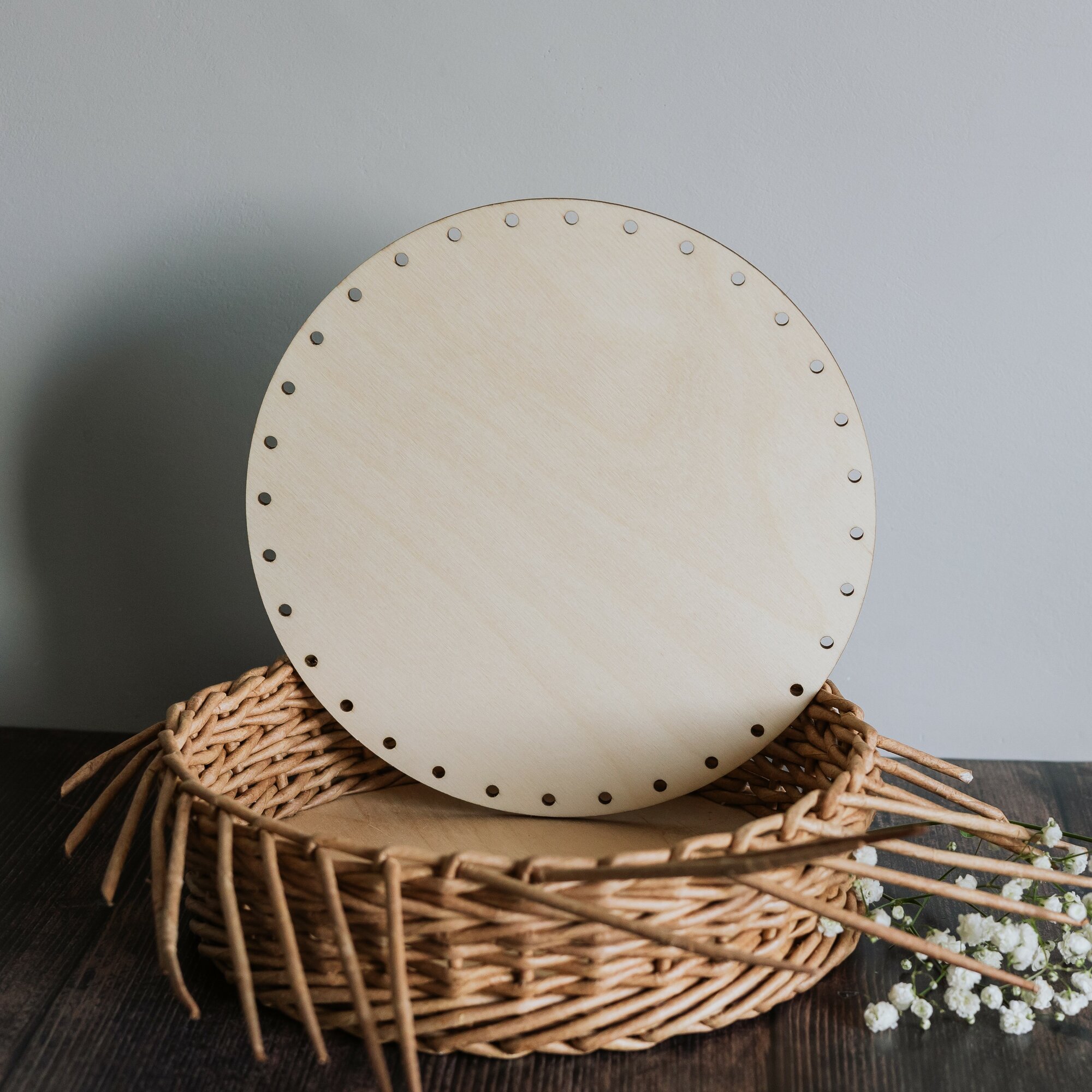 ⌀ 22,5см 10шт отверстия ⌀4мм. Донышко круглое для плетения корзин из бумажной лозы толщина 4мм