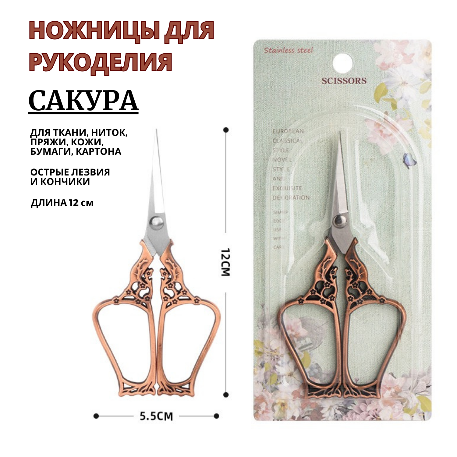 Ножницы для рукоделия винтажные "Сакура", цвет медь, длина 12 см интересное: