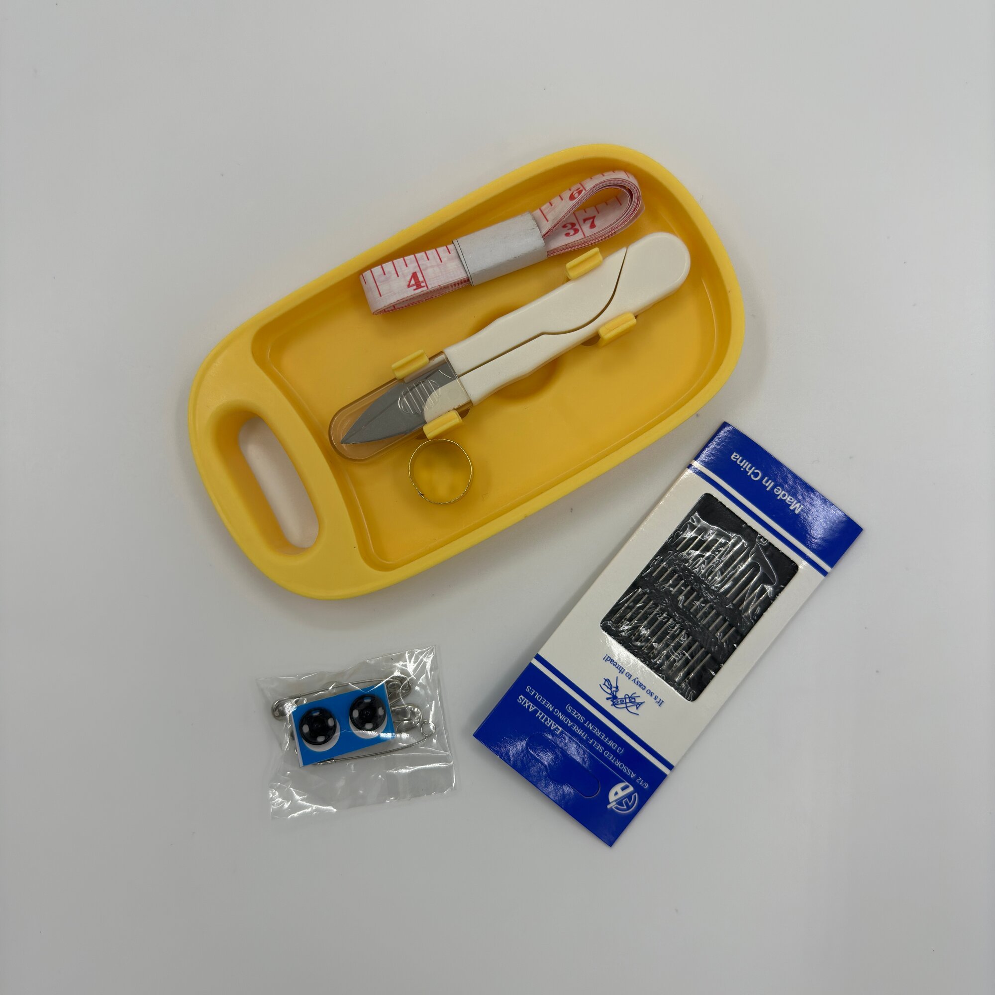 | Подробная комплектация | набор иголок и игольница, нитки разных цветов, сантиметр, кнопки и портновские ножницы. |
