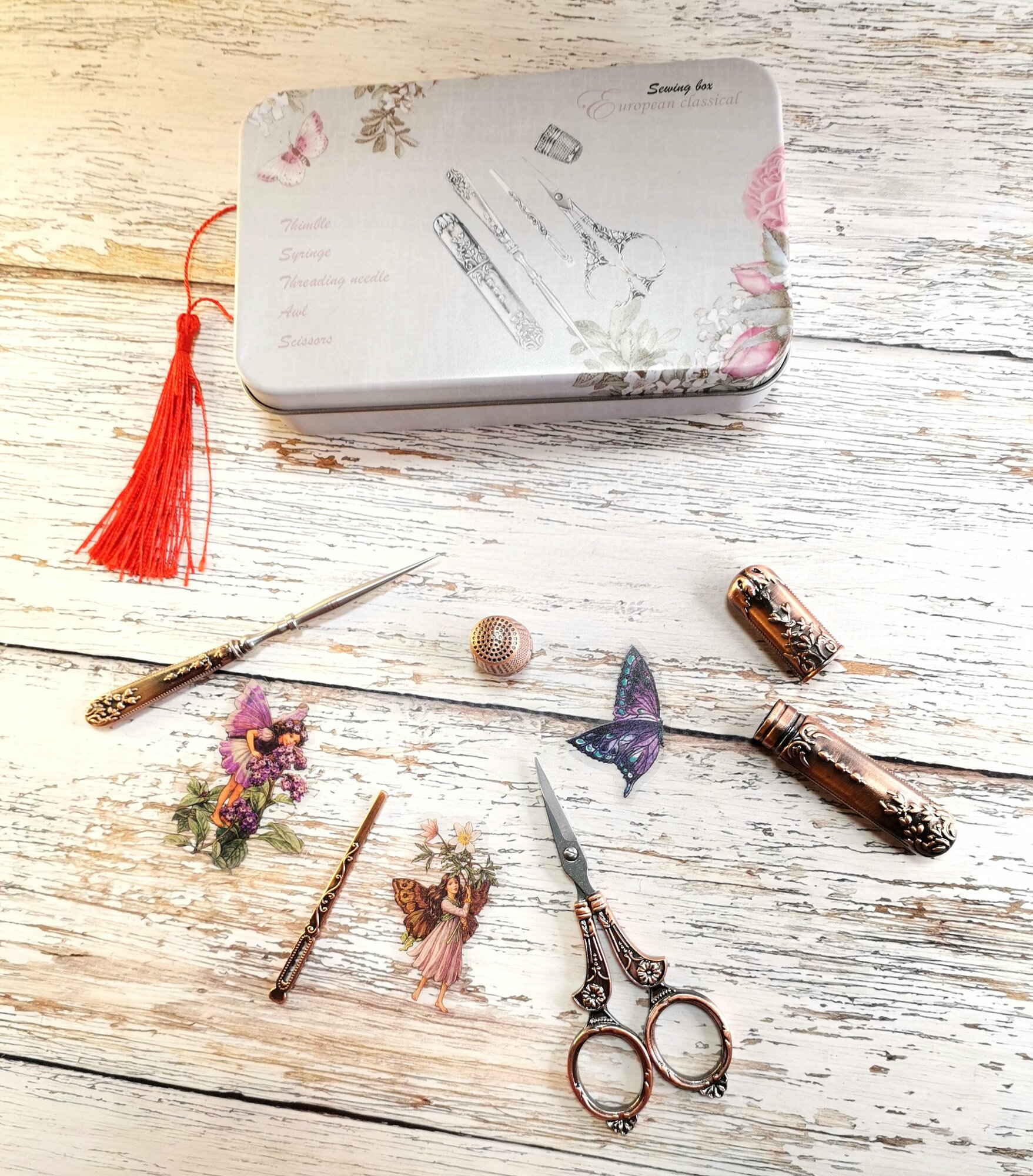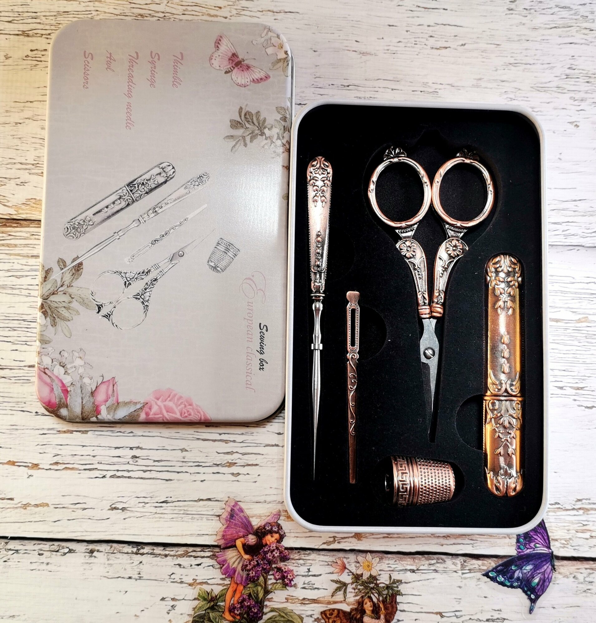 Купить Красивый Подарочный Швейный Набор 5в1 Ножницы с Аксессуарами в Ретро/Винтажном Стиле. Оригинальный Подарок для Творчества.